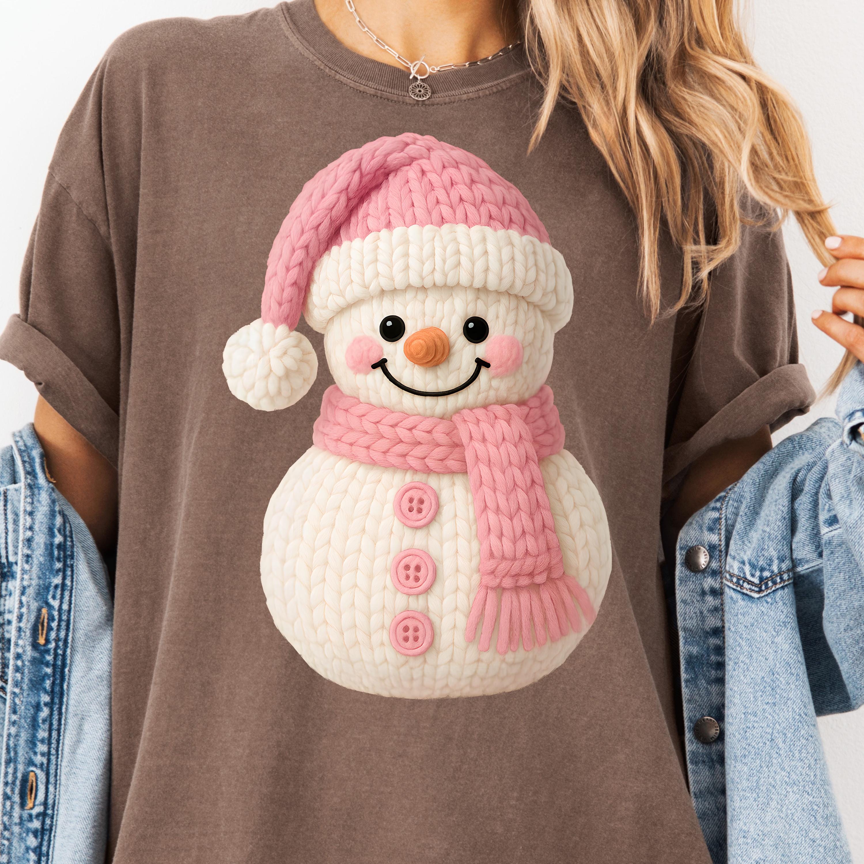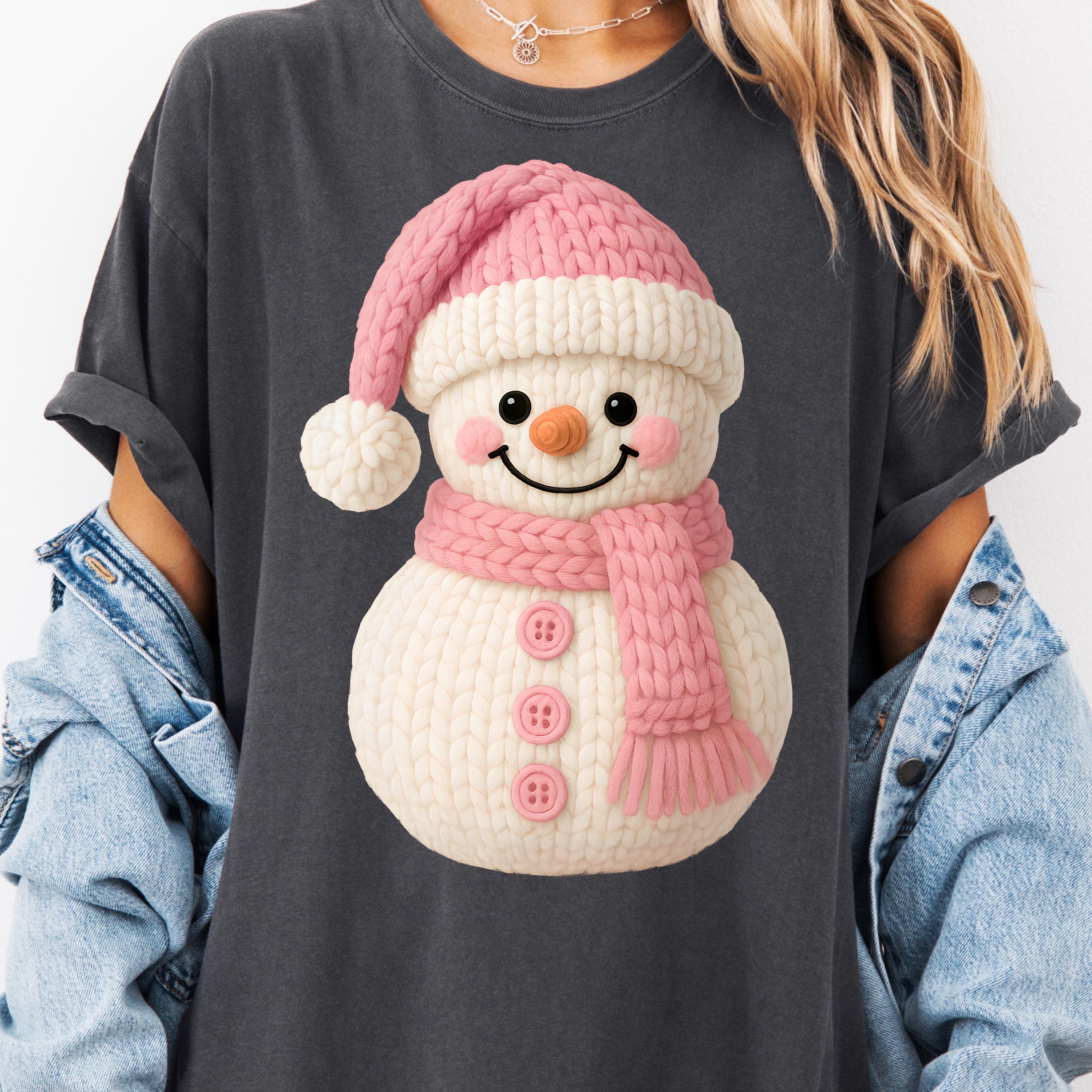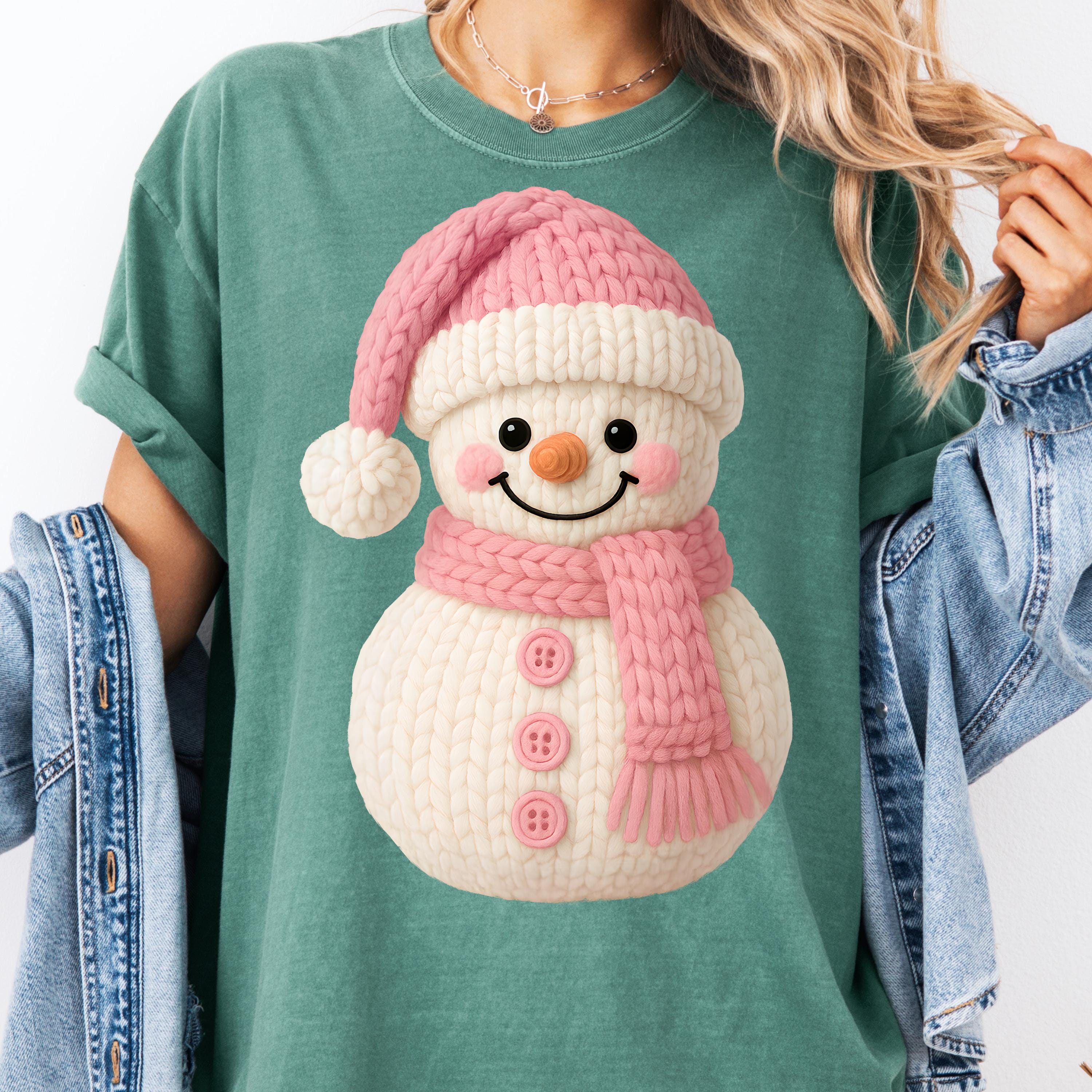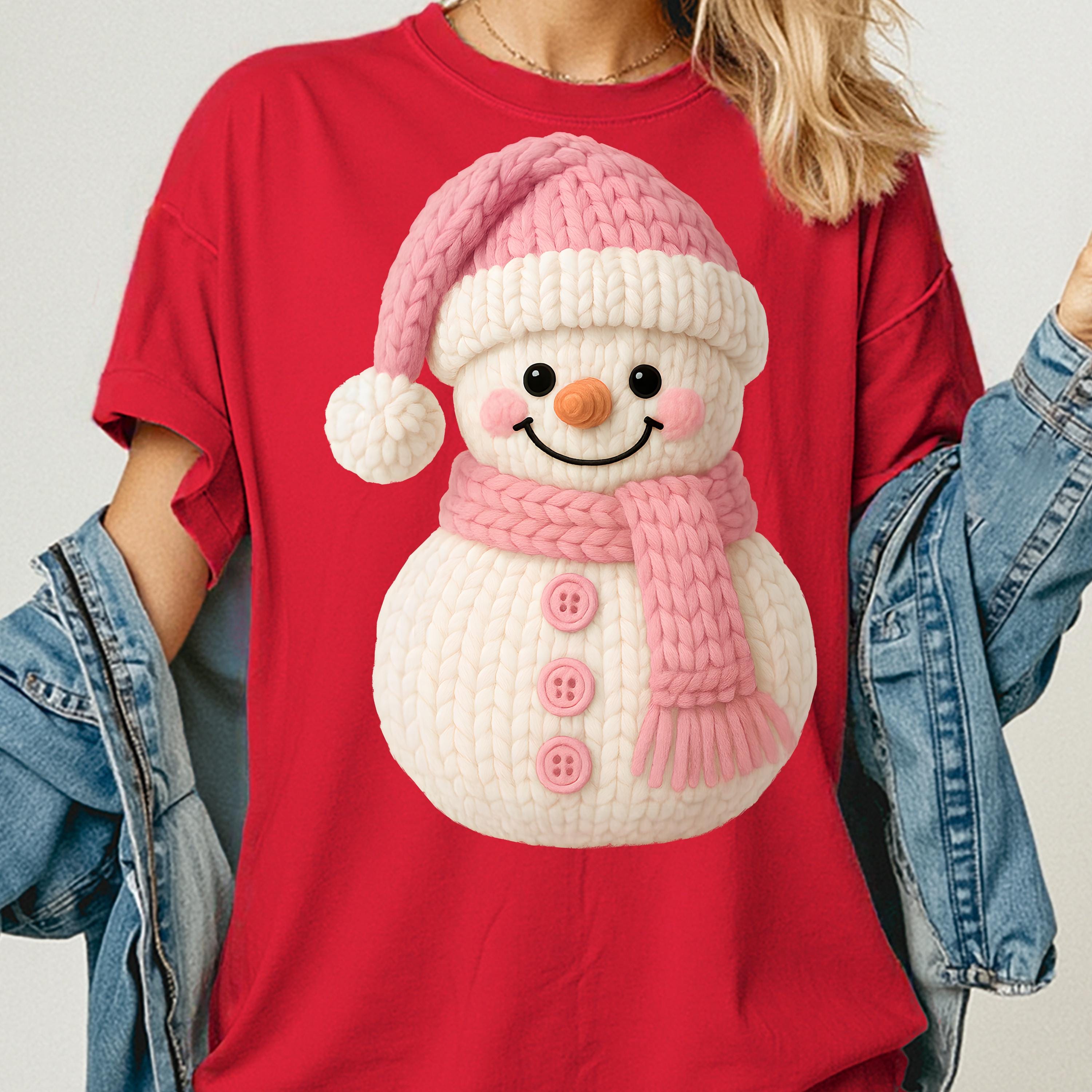 Faux Yarn Snowman Christmas T-Shirt, Holiday Tee
