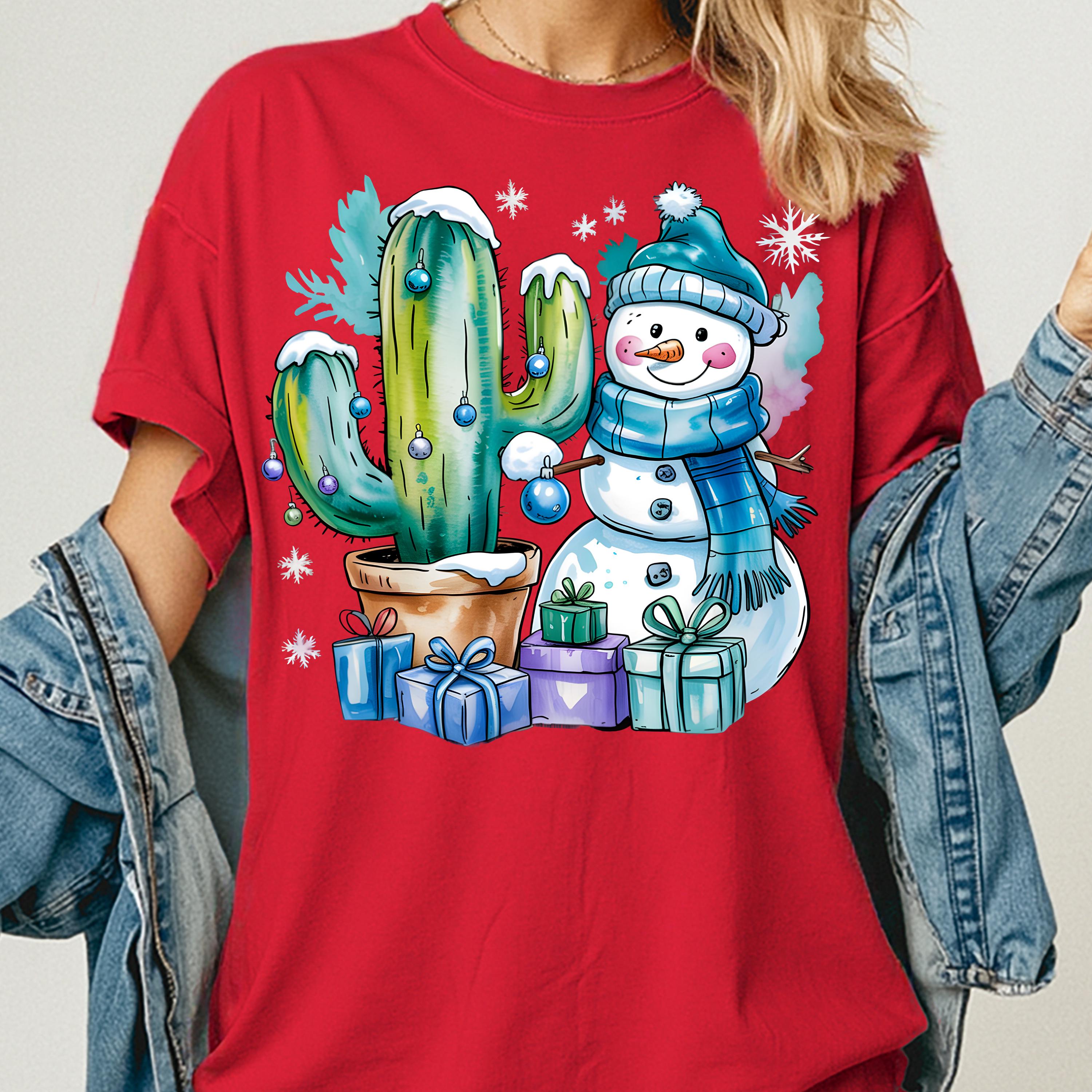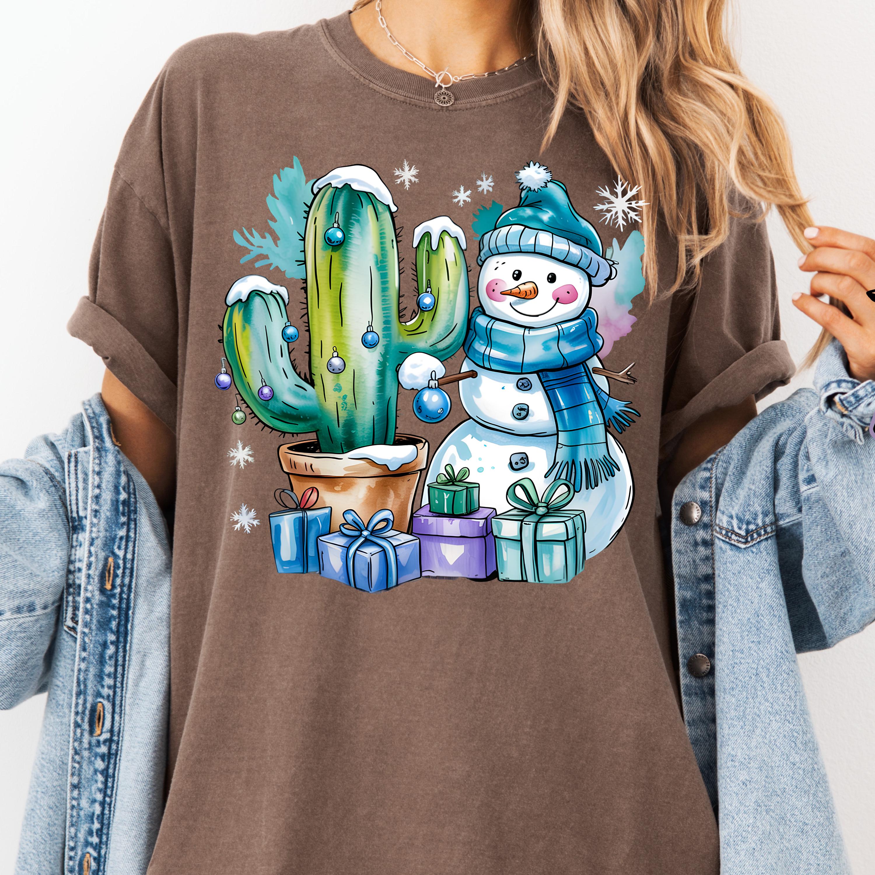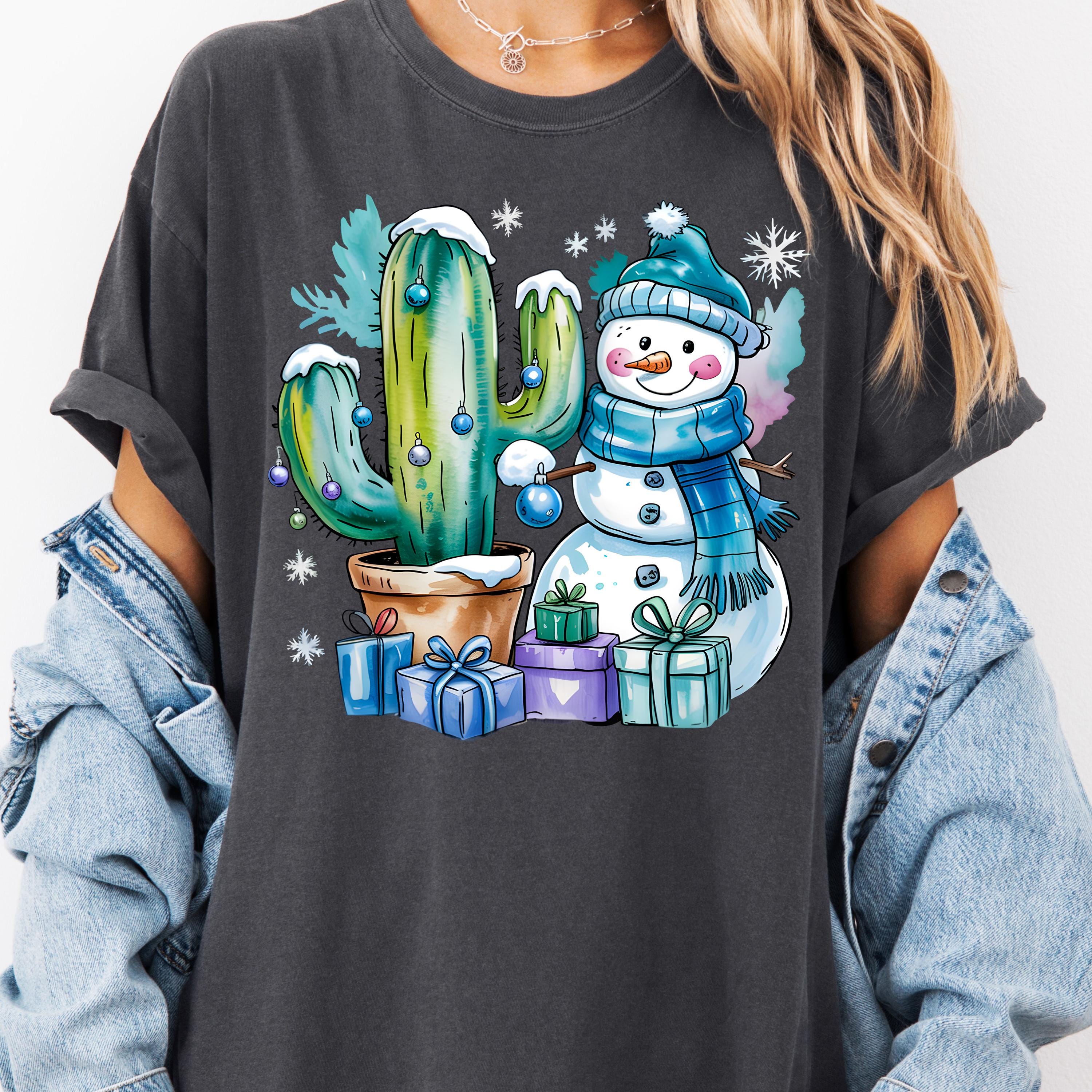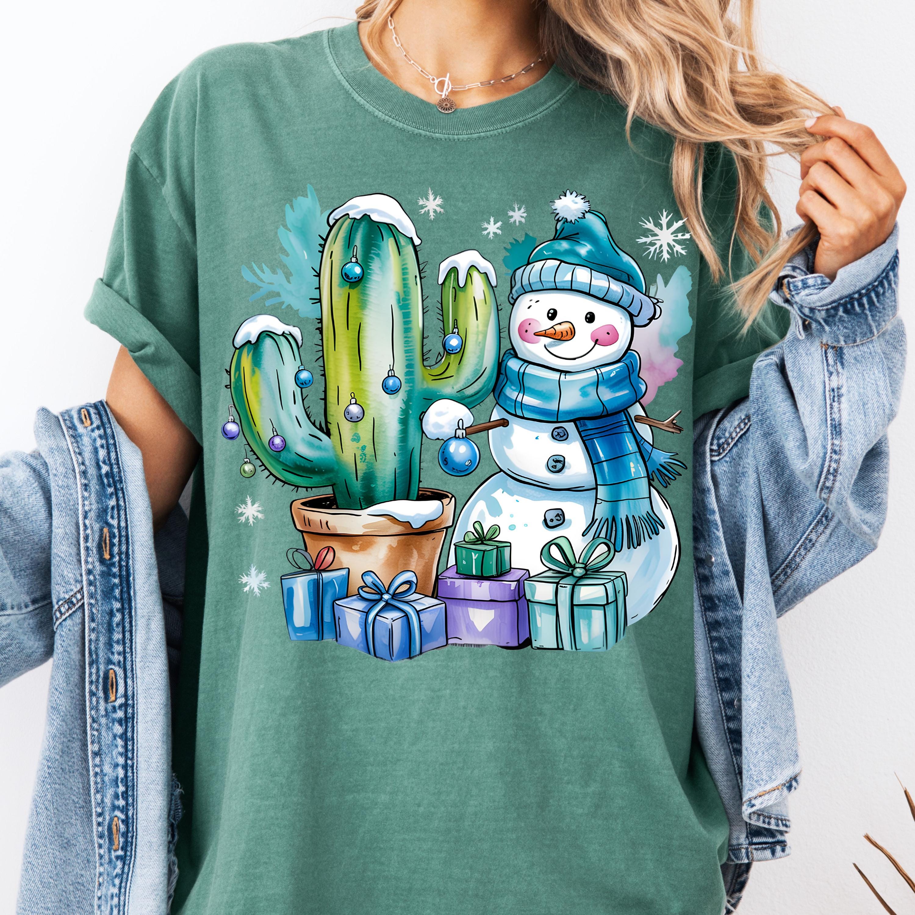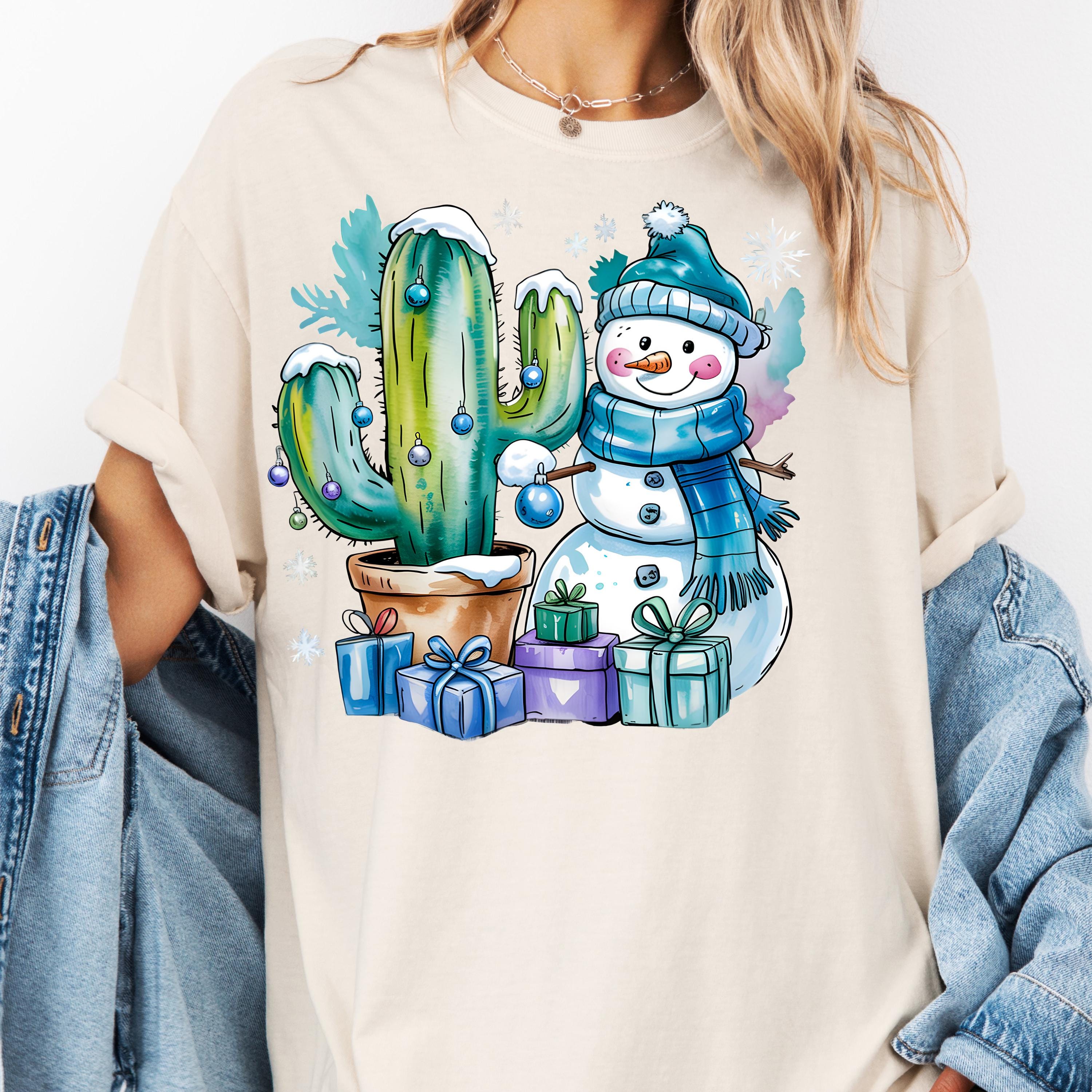 Christmas Cactus Shirt, Festive Tee for Holiday Lovers, Snowman Gift