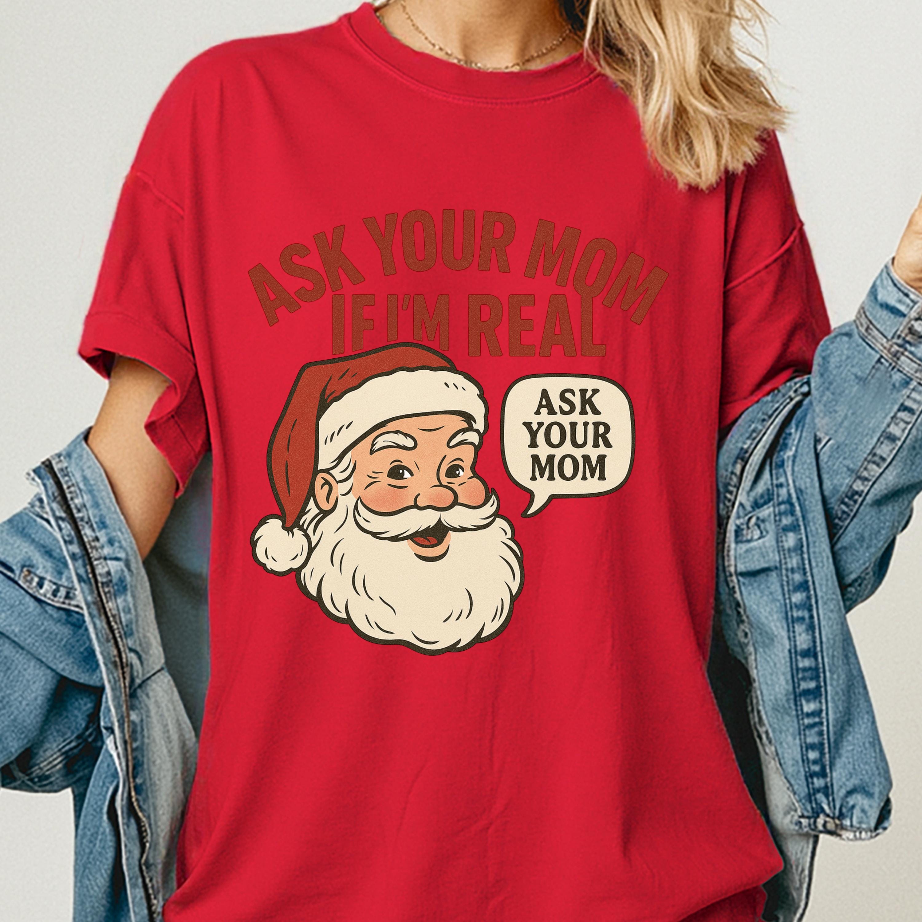 Santa Claus Shirt, Ask Your Mom Tee for Christmas, Funny Holiday T-Shirt gift