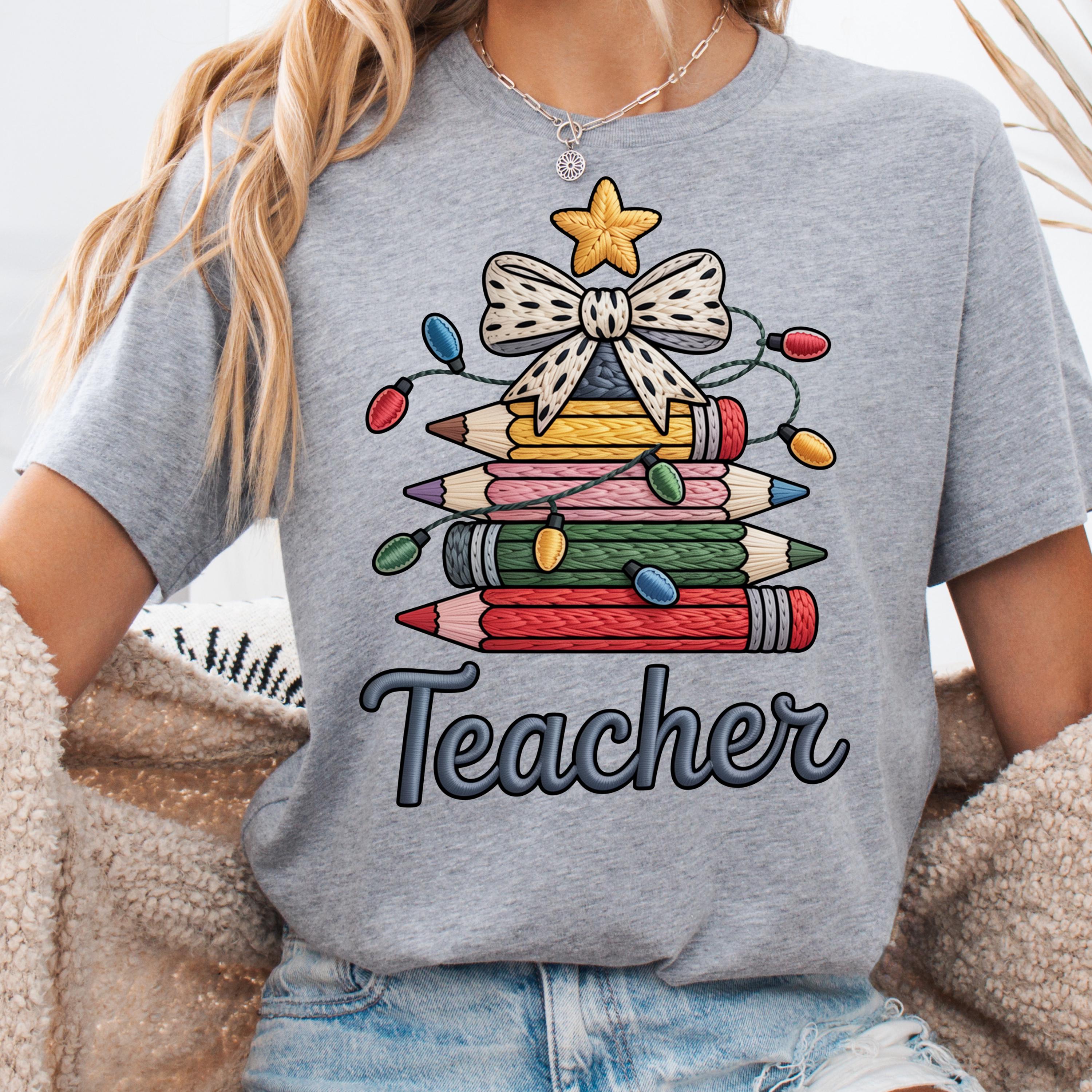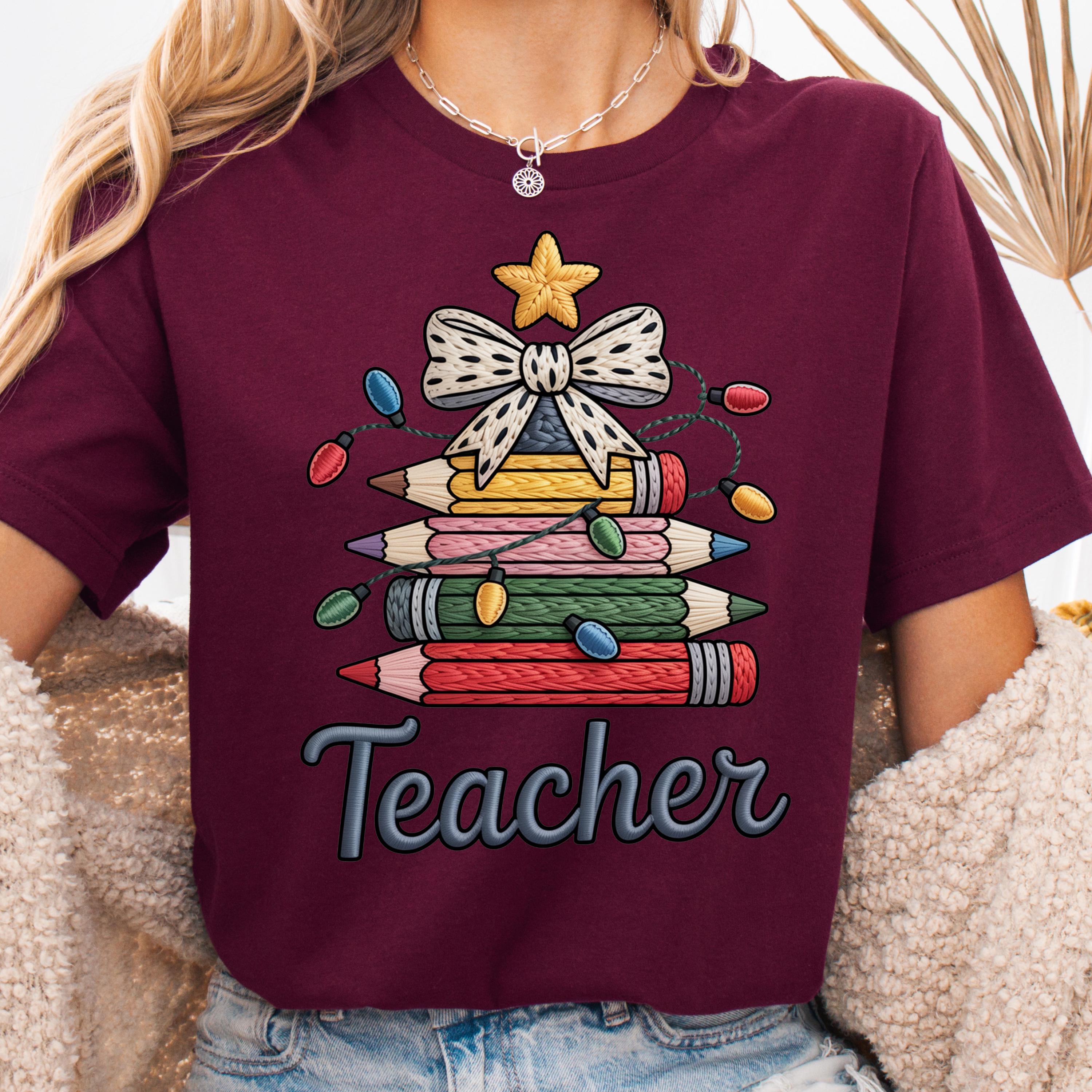 faux Yarn Pencil Teacher Christmas Shirt, Holiday shirt for Educators Gift