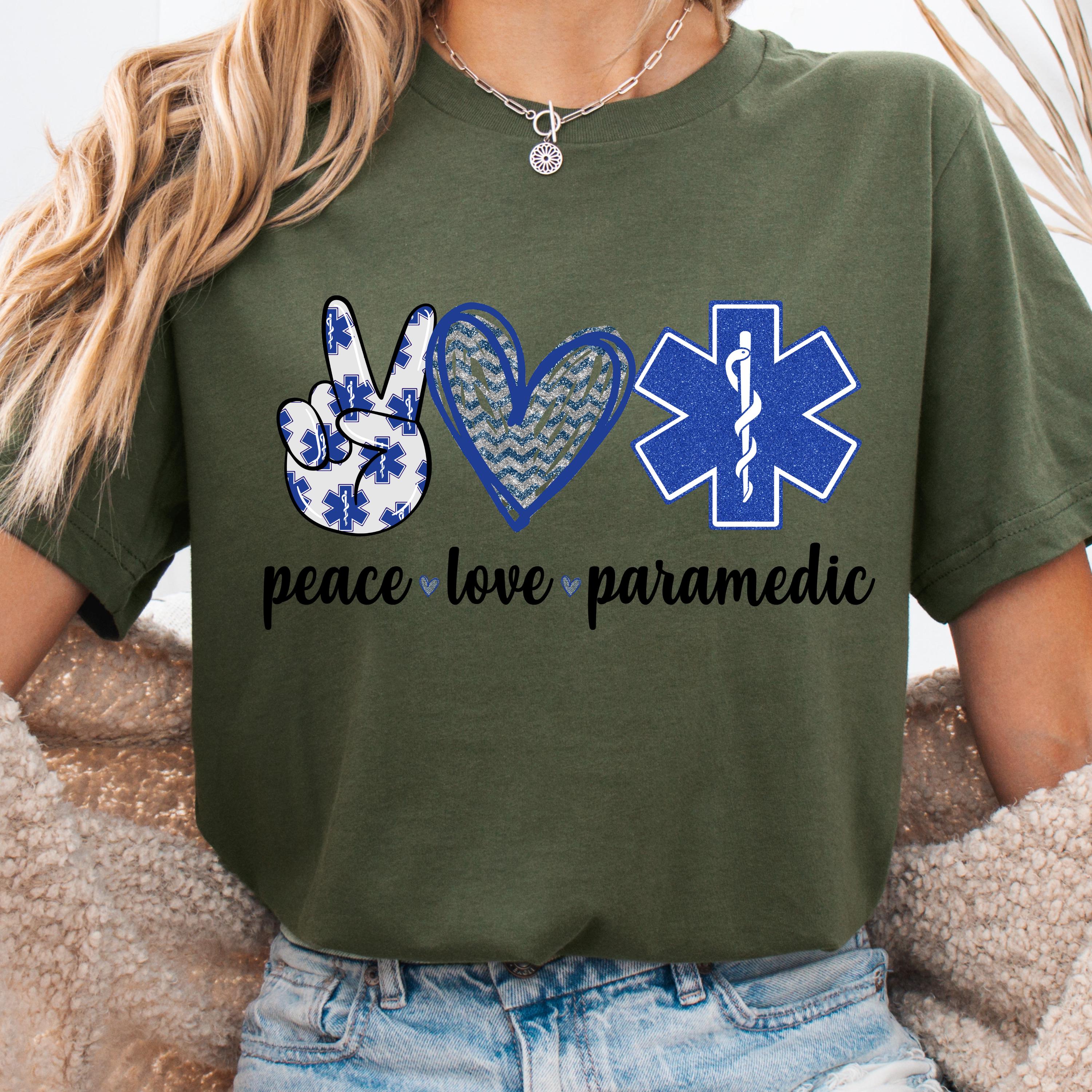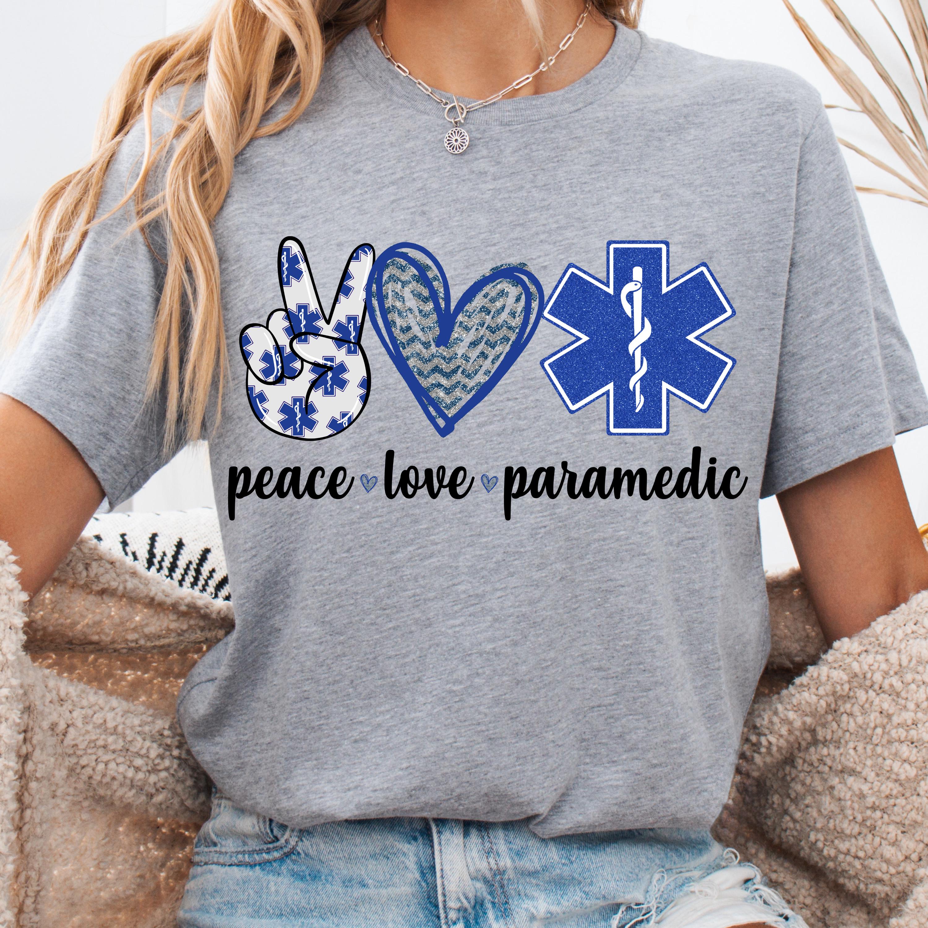 Paramedic Shirt, Peace Love Tee for EMT, First Responder Gift