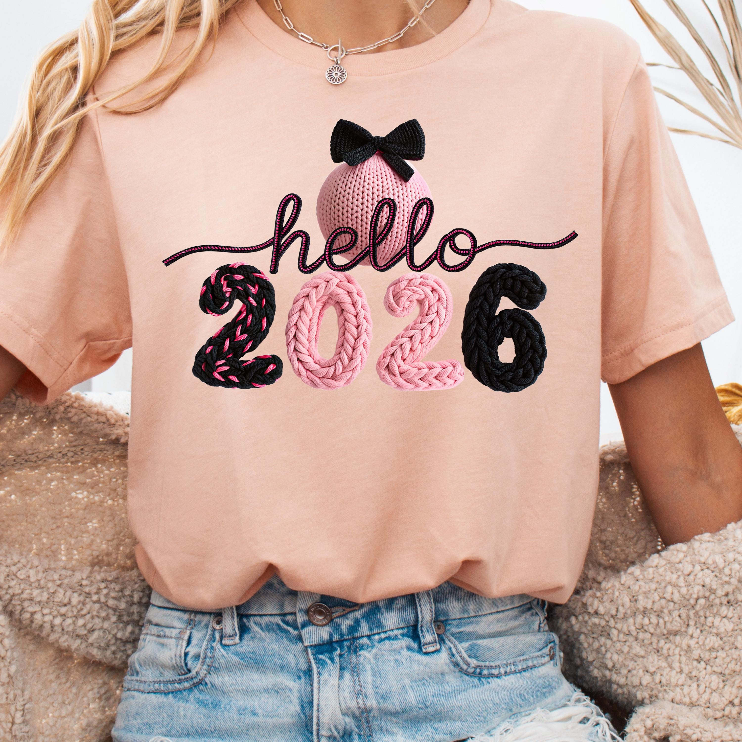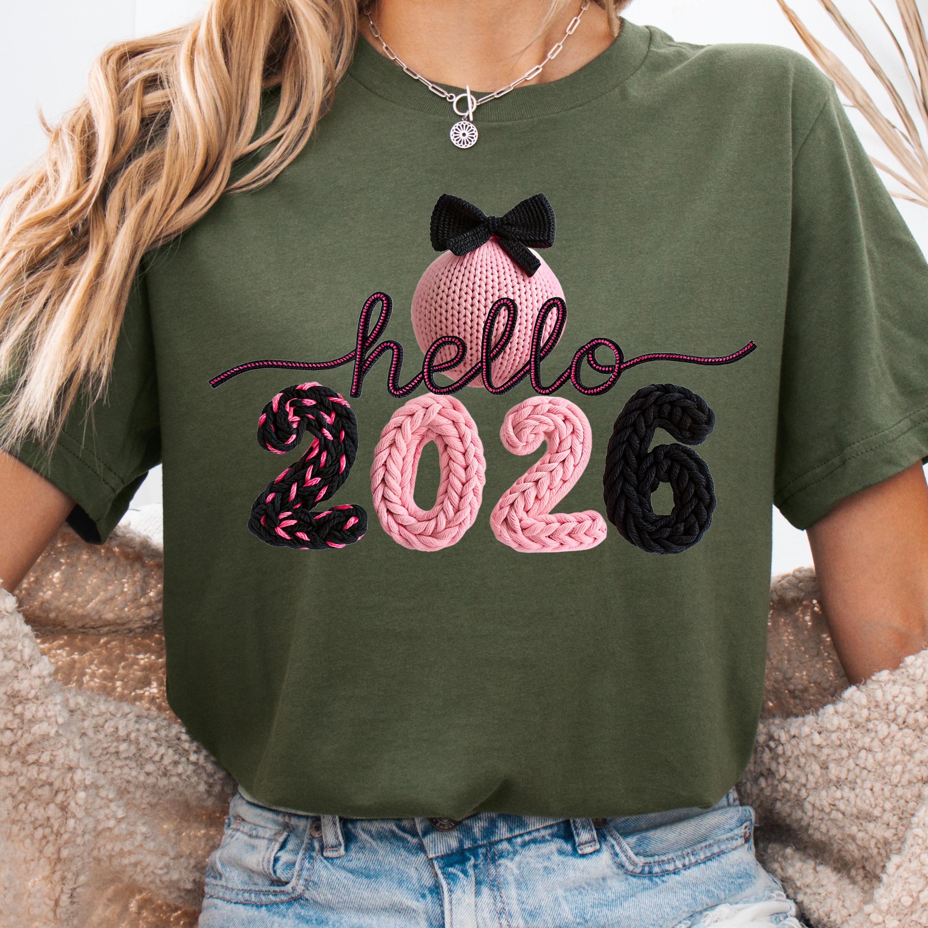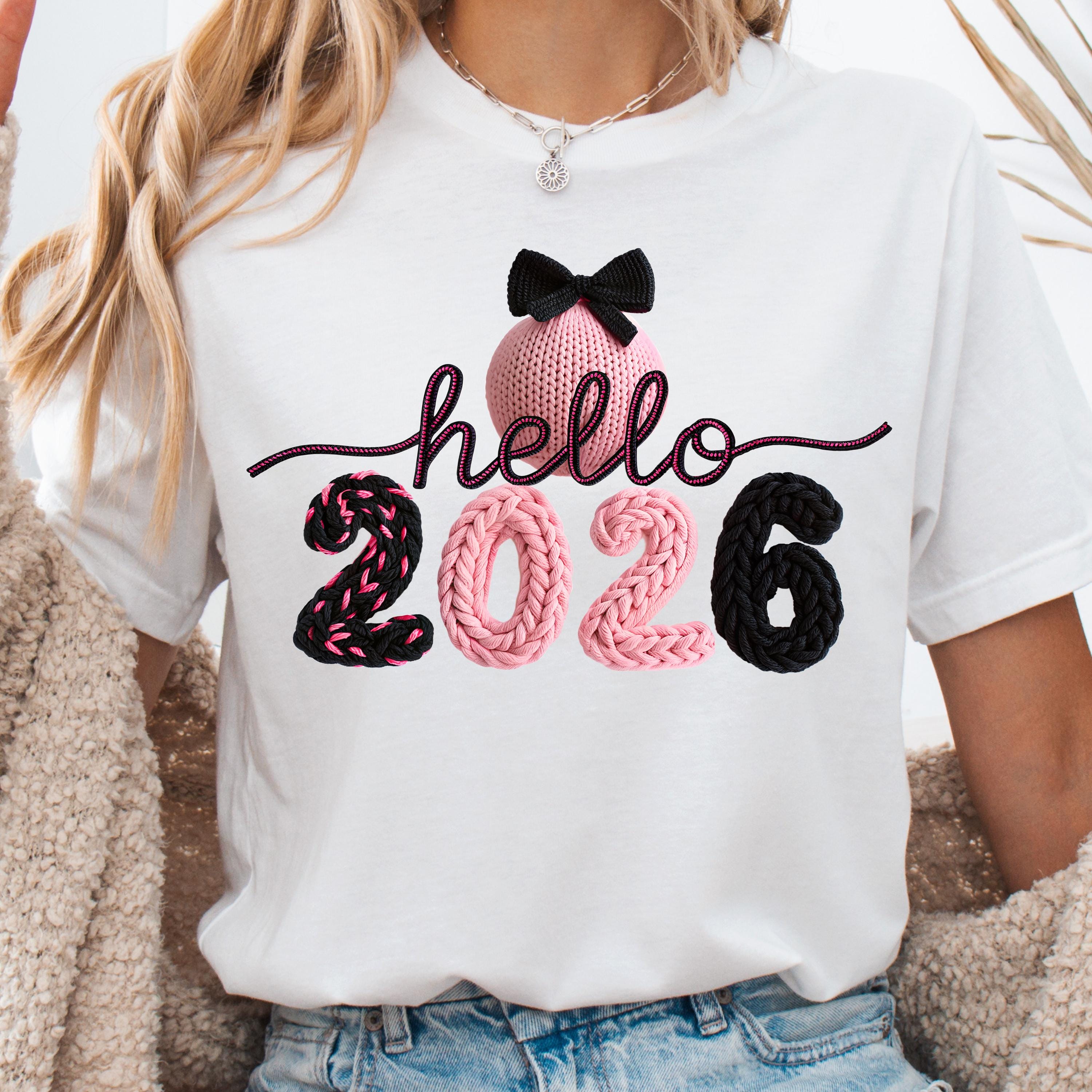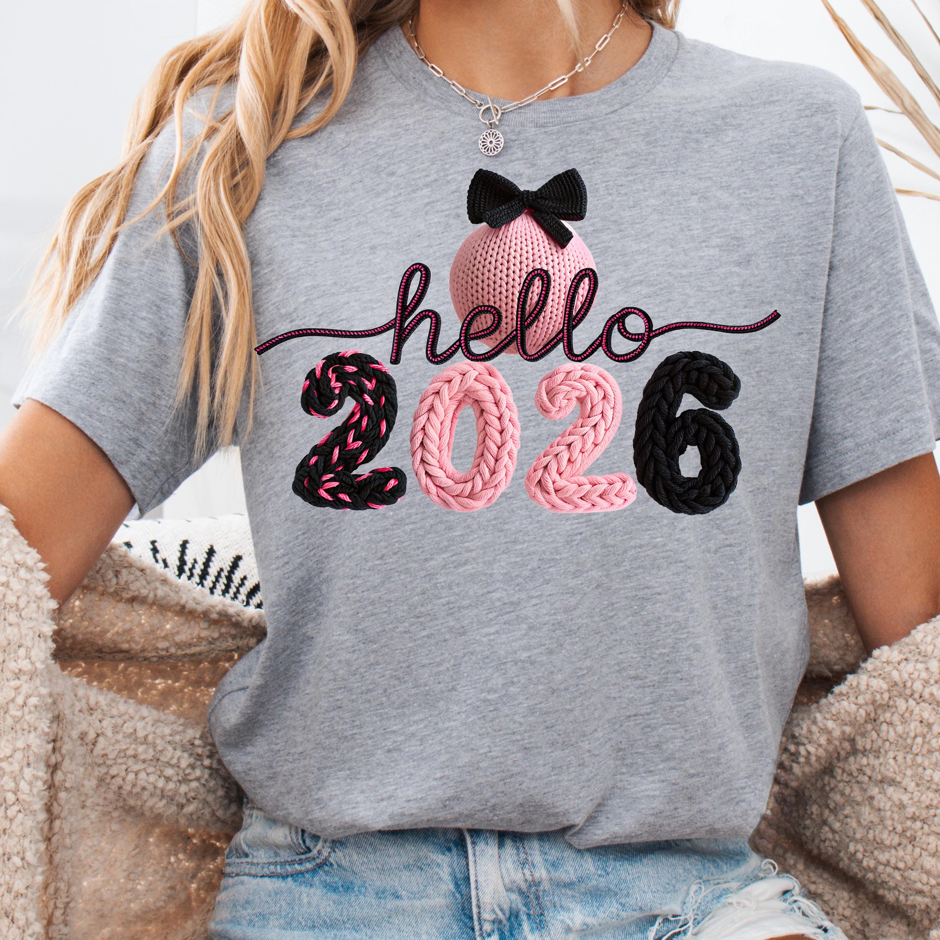Faux Yarn Hello 2026 Shirt, Festive Tee for New Year, Celebration Gift