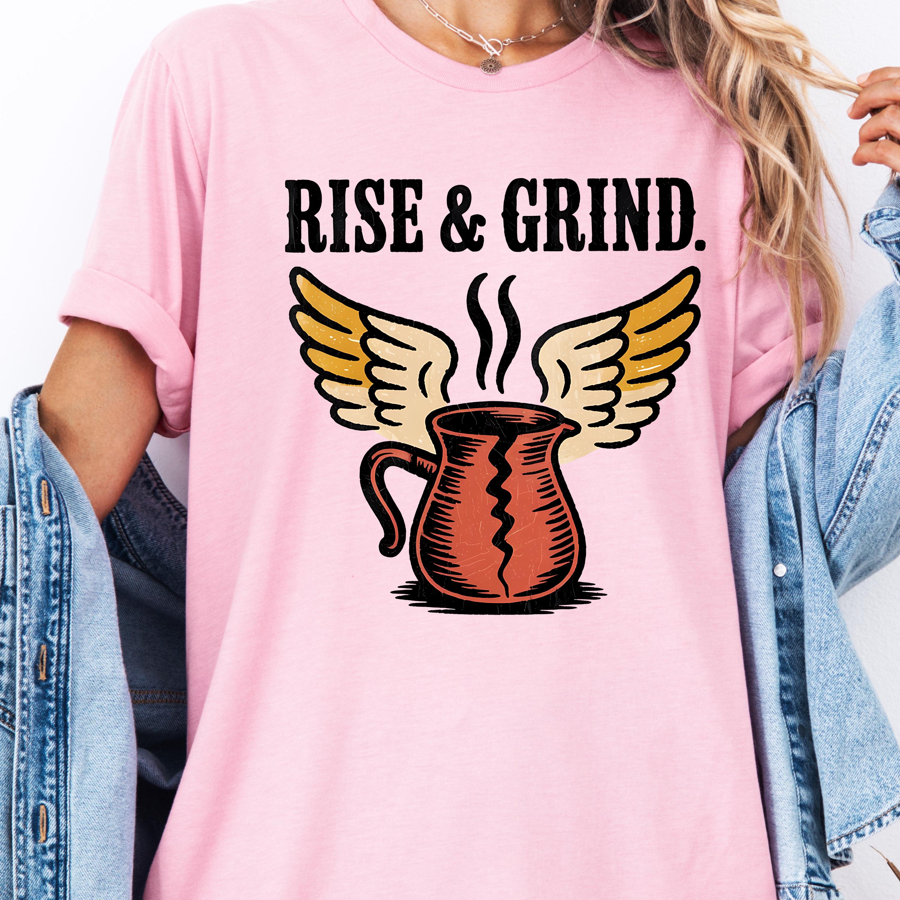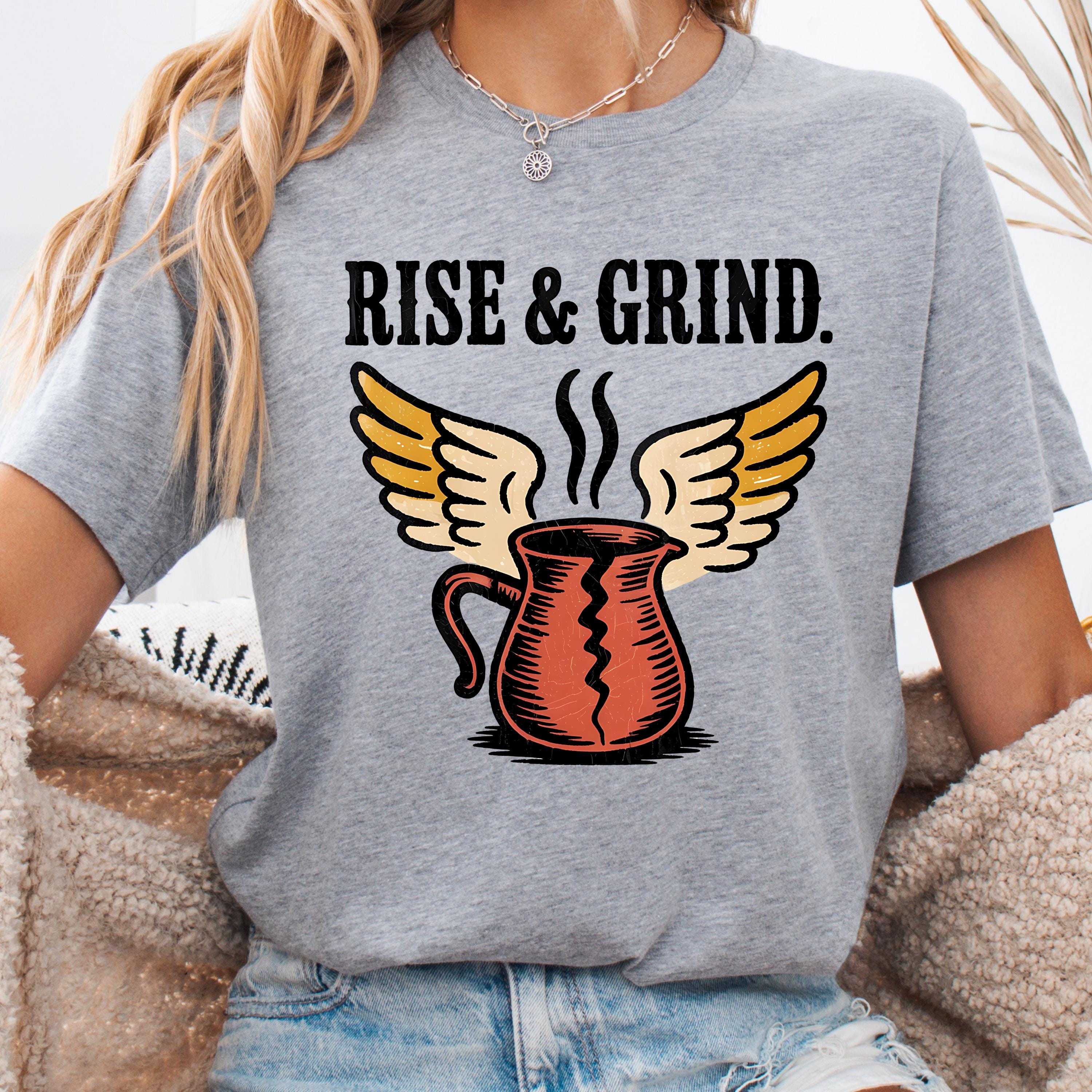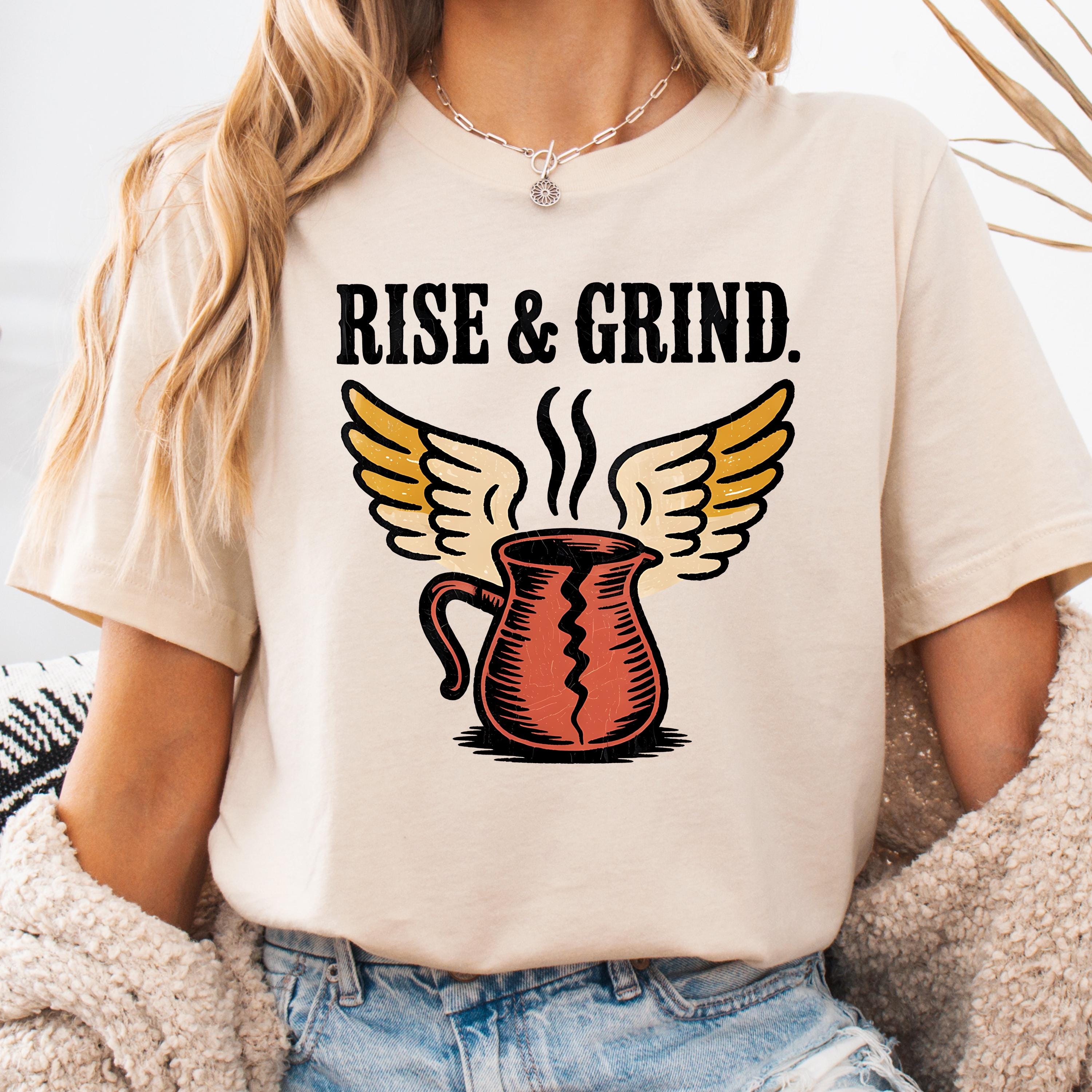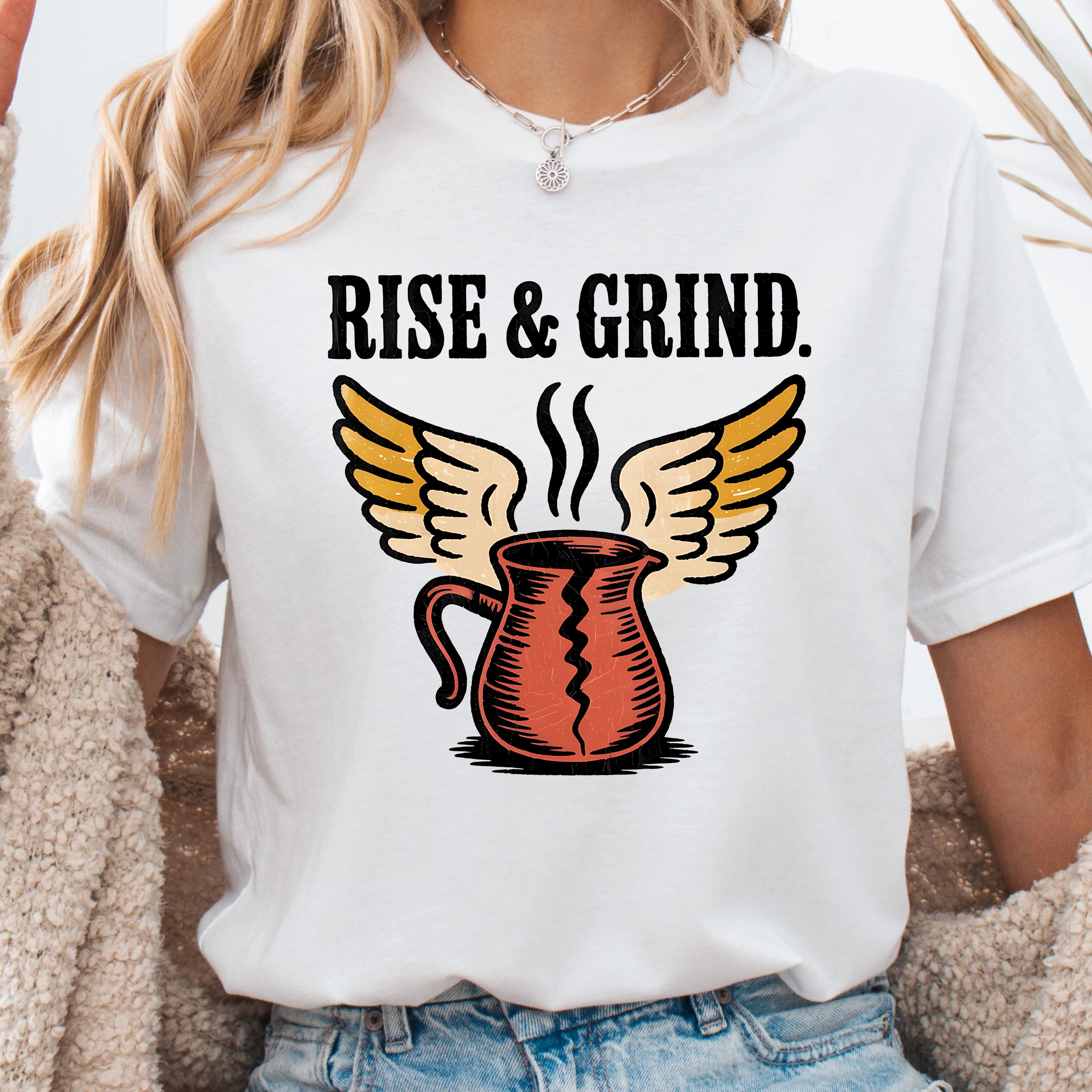 Coffee Lover Shirt , Rise and Grind Gift for Coffee Enthusiasts, Caffeine Addict T-Shirt