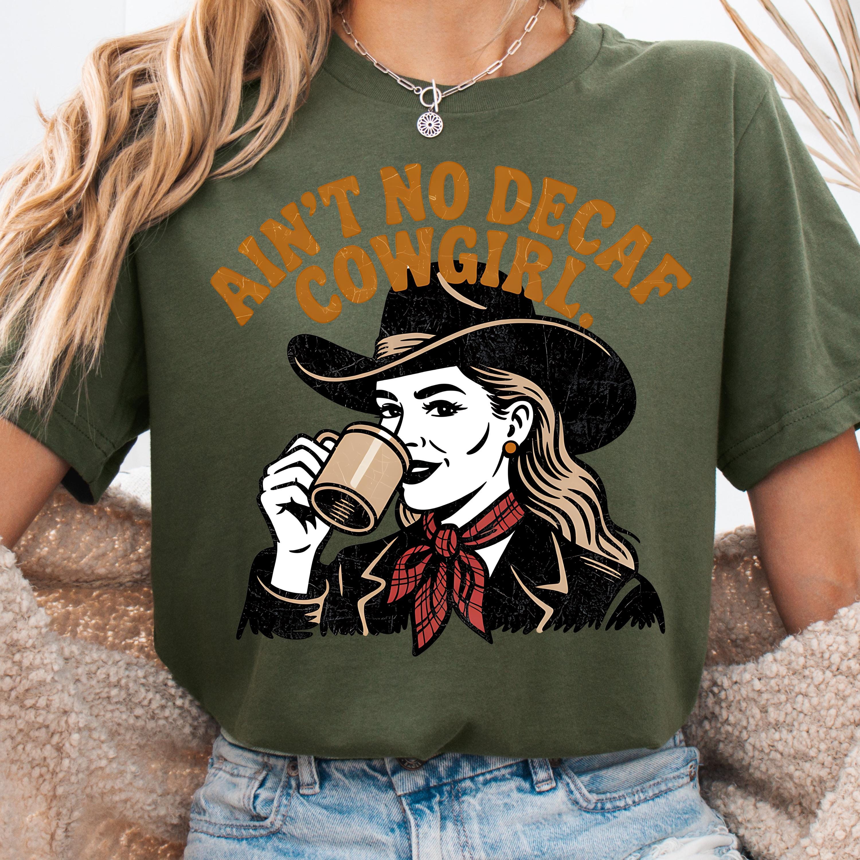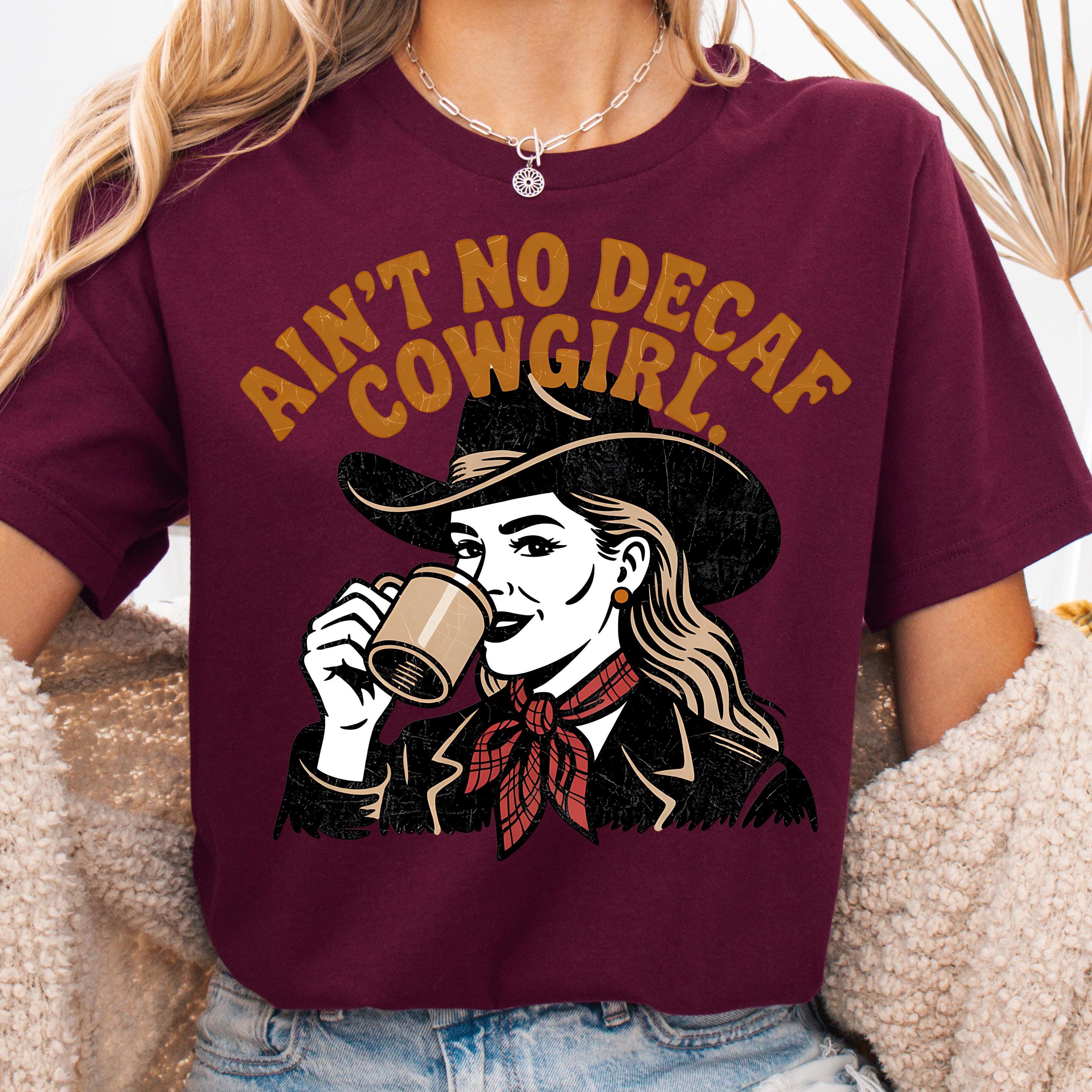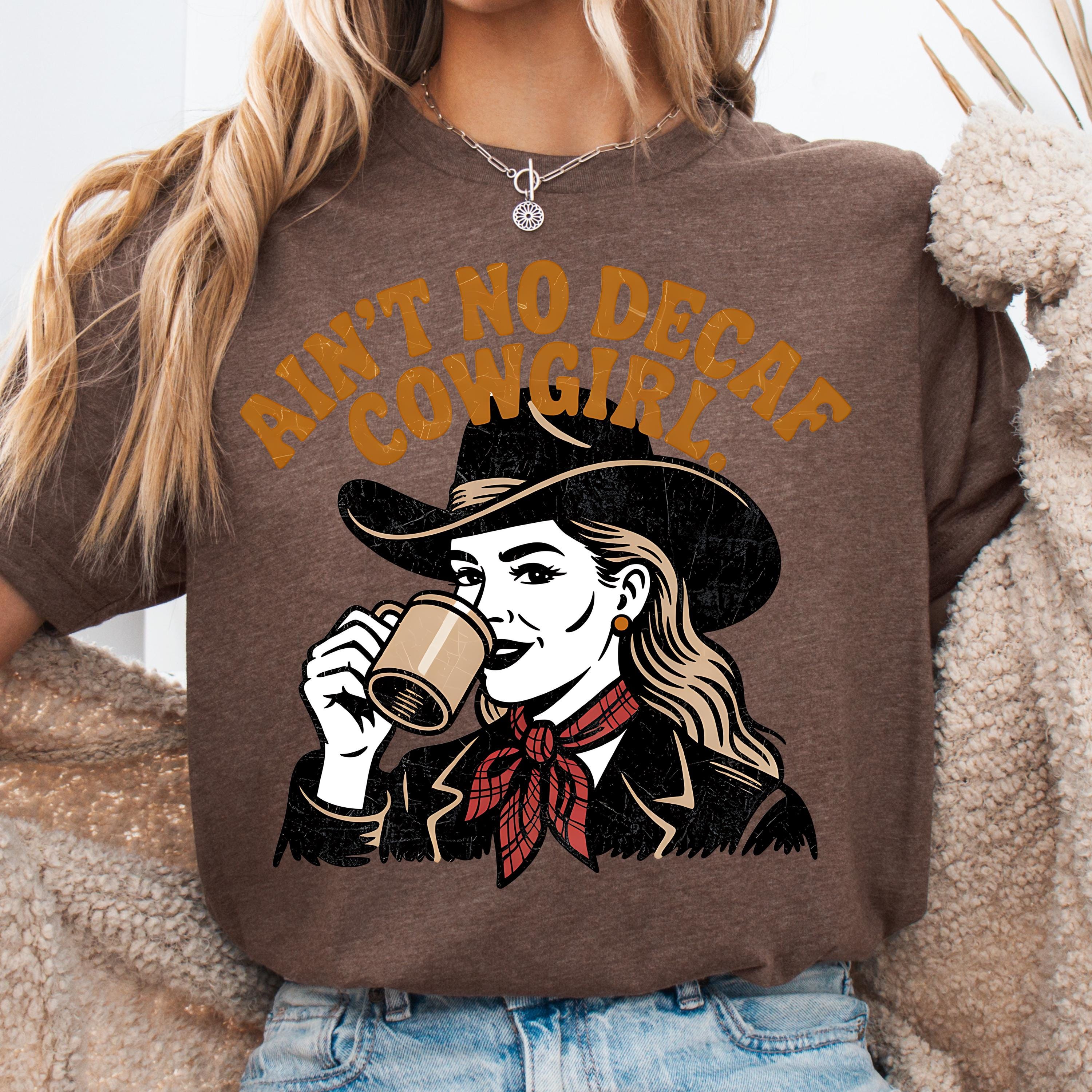 Cowgirl Coffee Shirt, Ain't No Decaf Tee for Western Lovers, Country Girl Gift