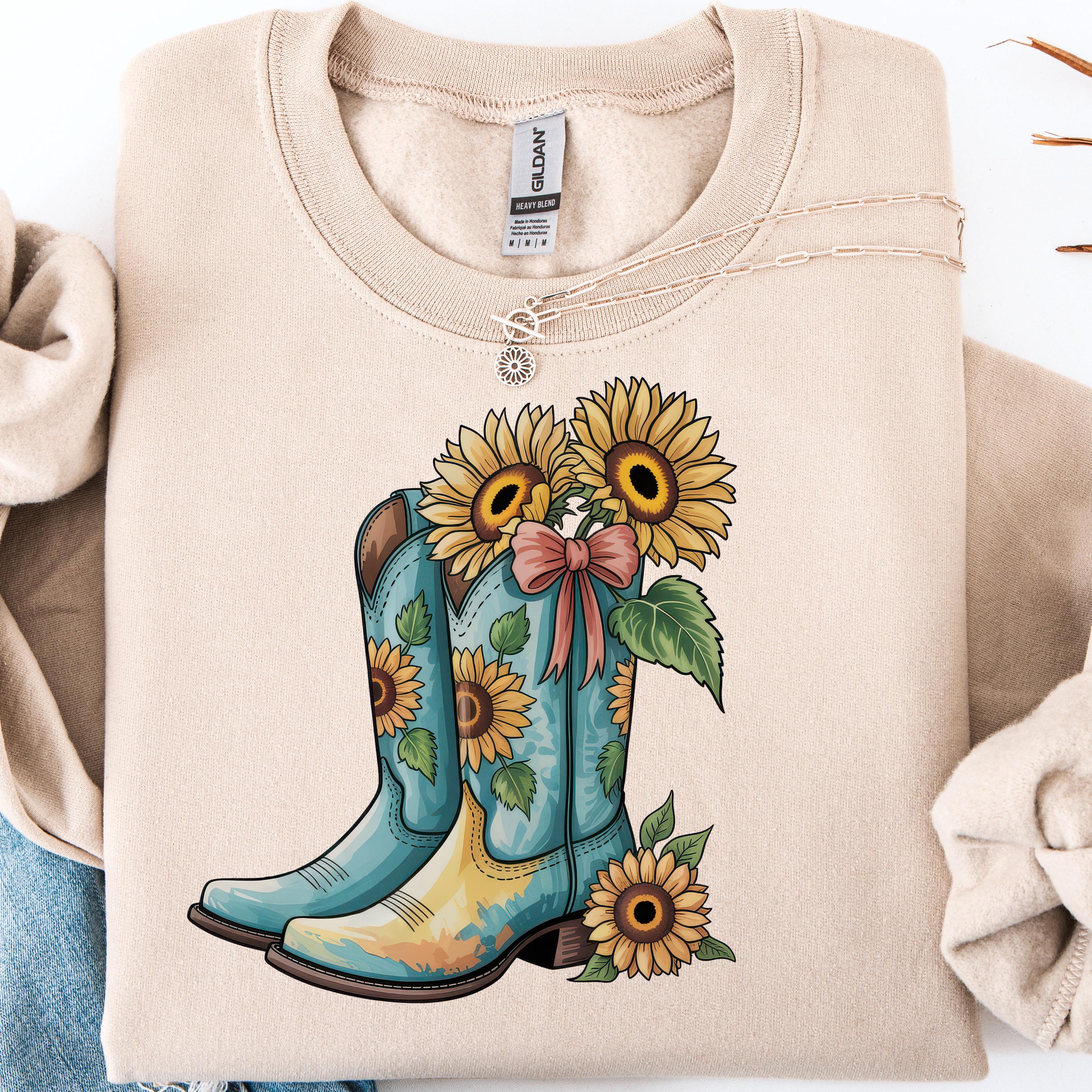 Cowgirl Boots Shirt, Floral Tee for Sunflower Fans, Western Gift