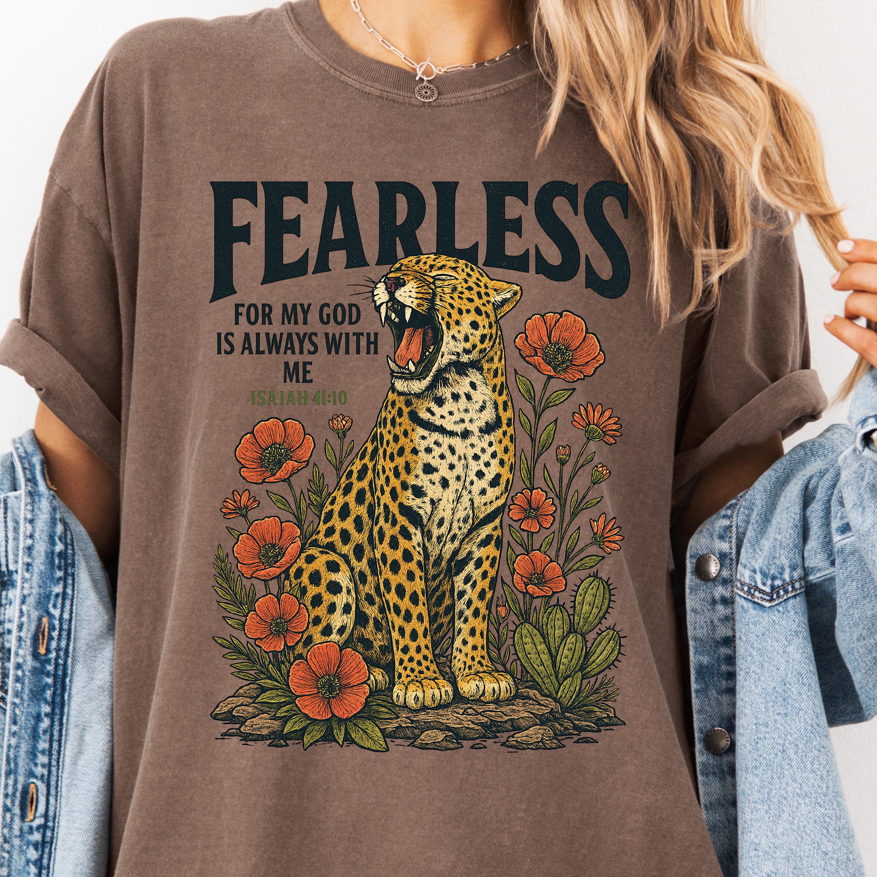 Fearless Faith comfort color Shirt, Spiritual Leopard Tee for Believers, Inspirational Gift