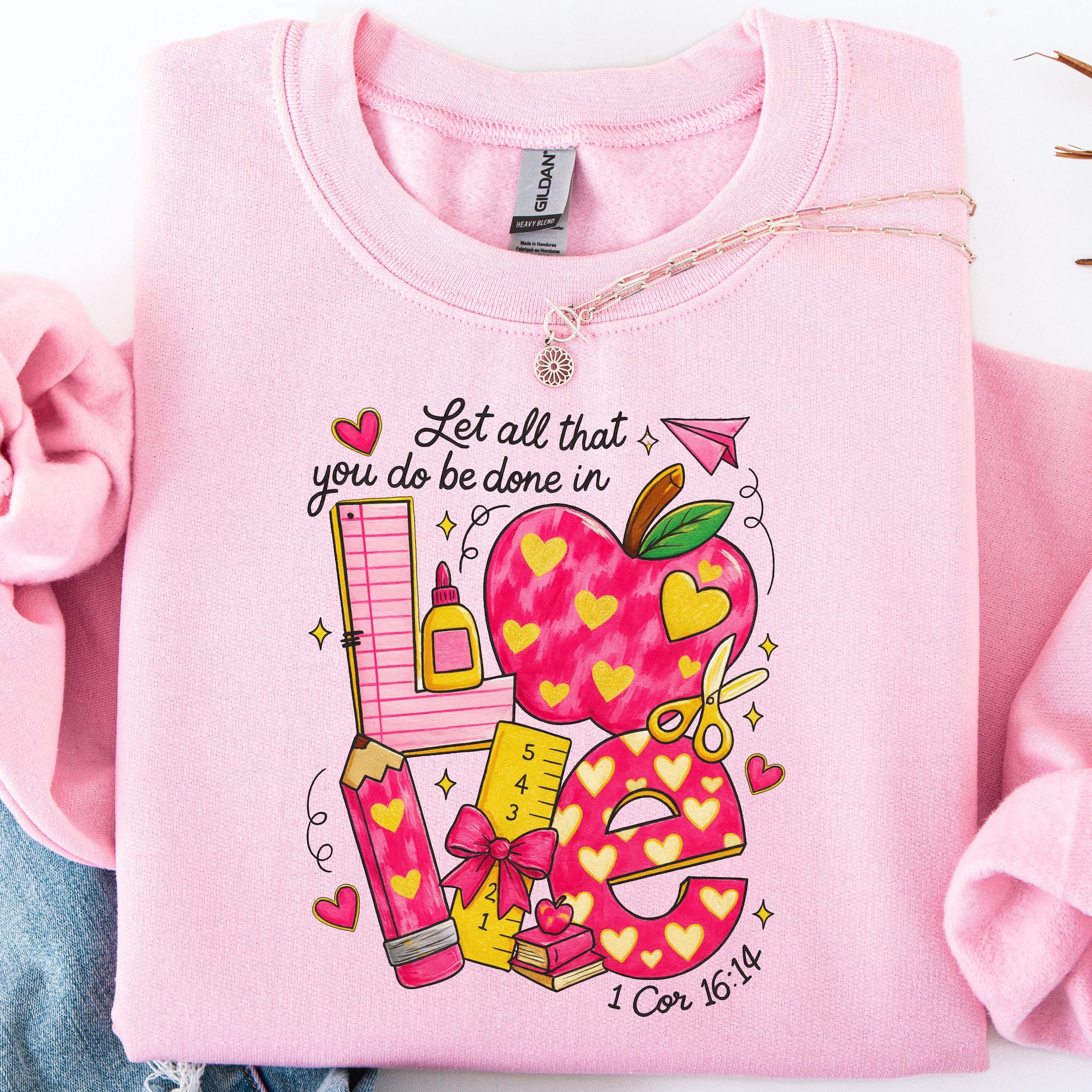 Preppy Teacher Love Shirt for Educators, Inspirational sweatshirt Gift for Teachers