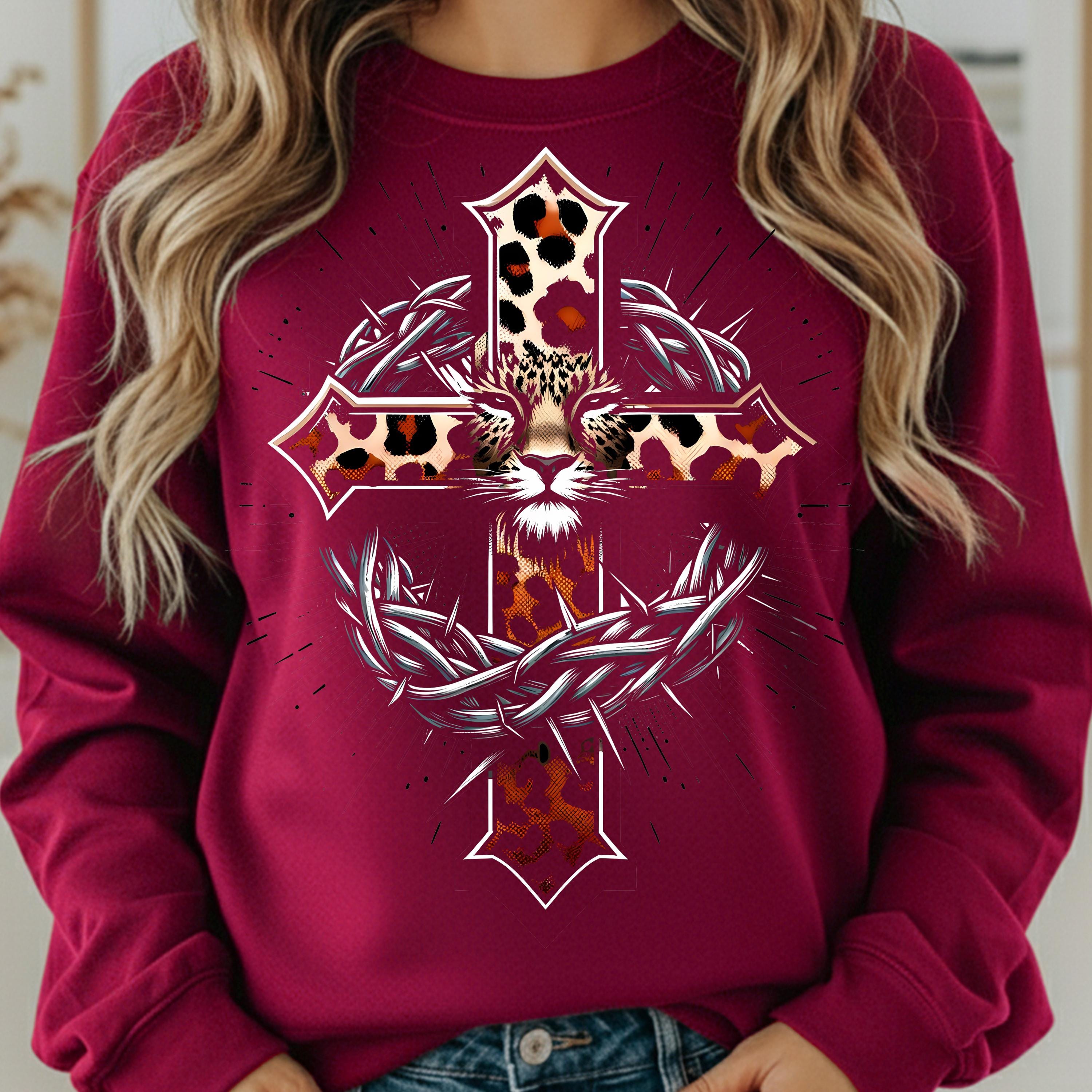 Leopard Cross Shirt for Faithful, Animal Print sweatshirt Gift for Christians