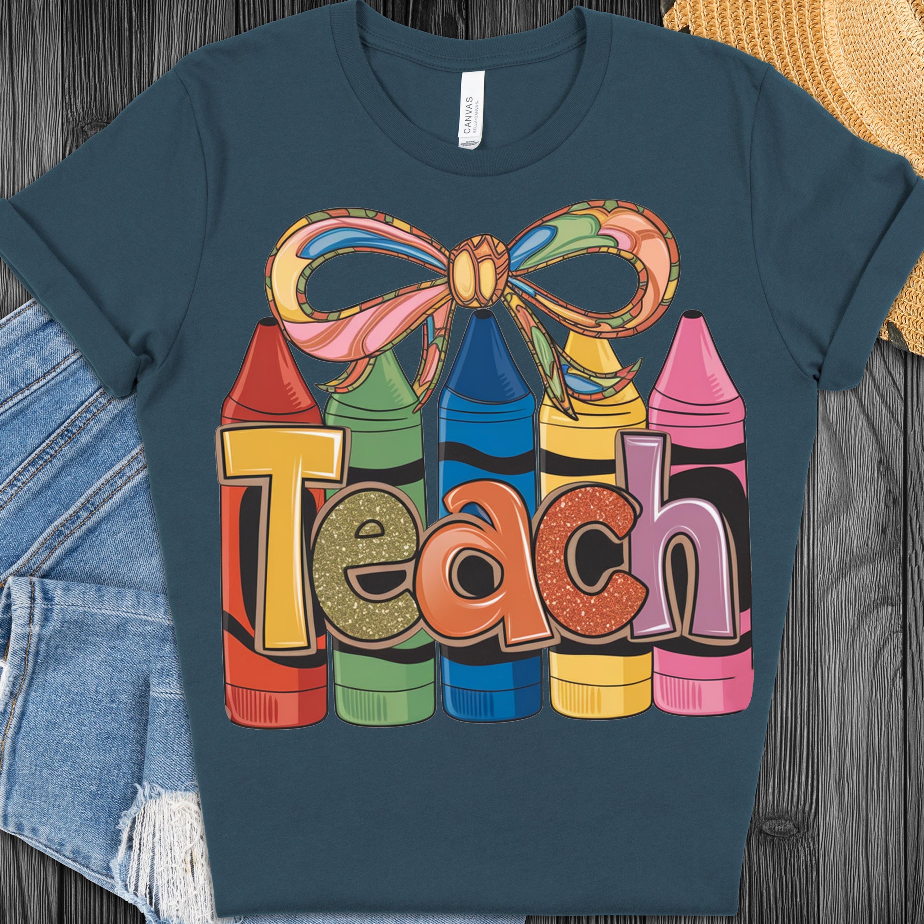 Teacher Crayon Shirt, Fun Tee for Educators Colorful Teaching Gift