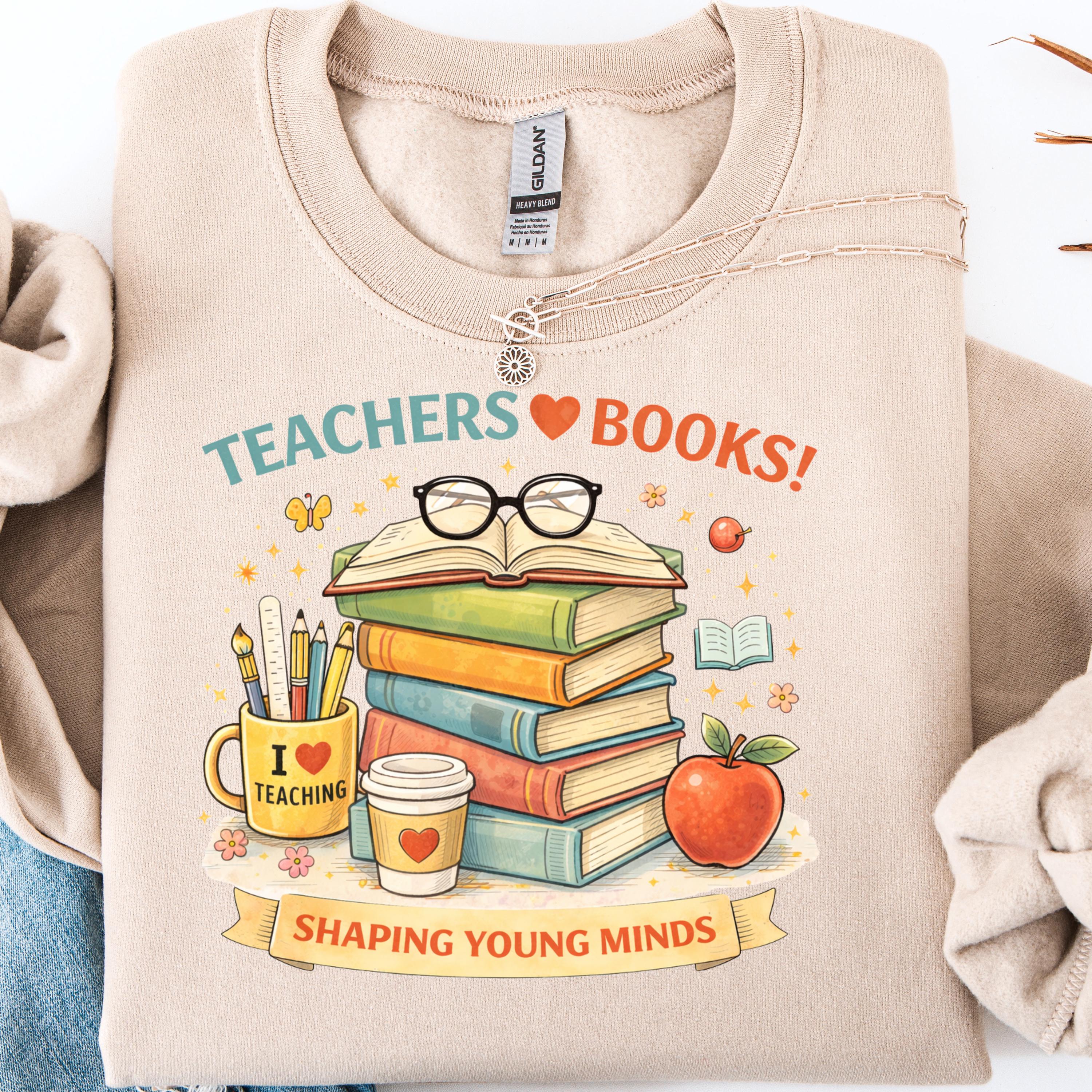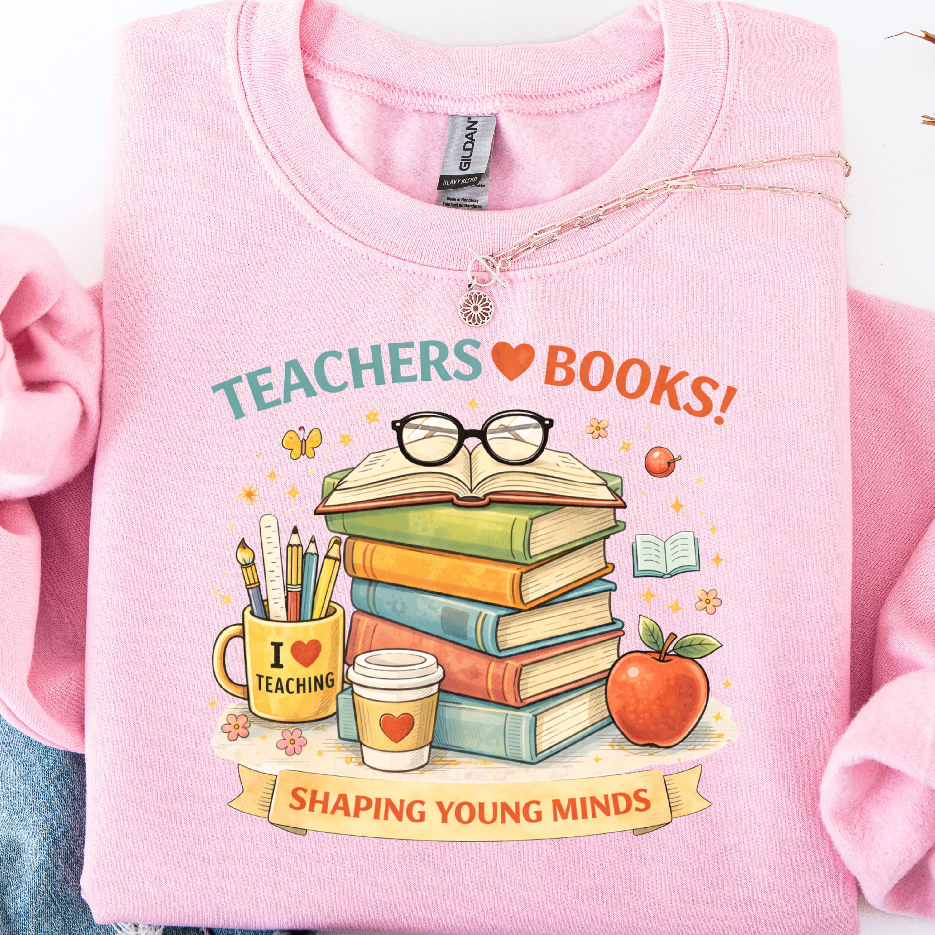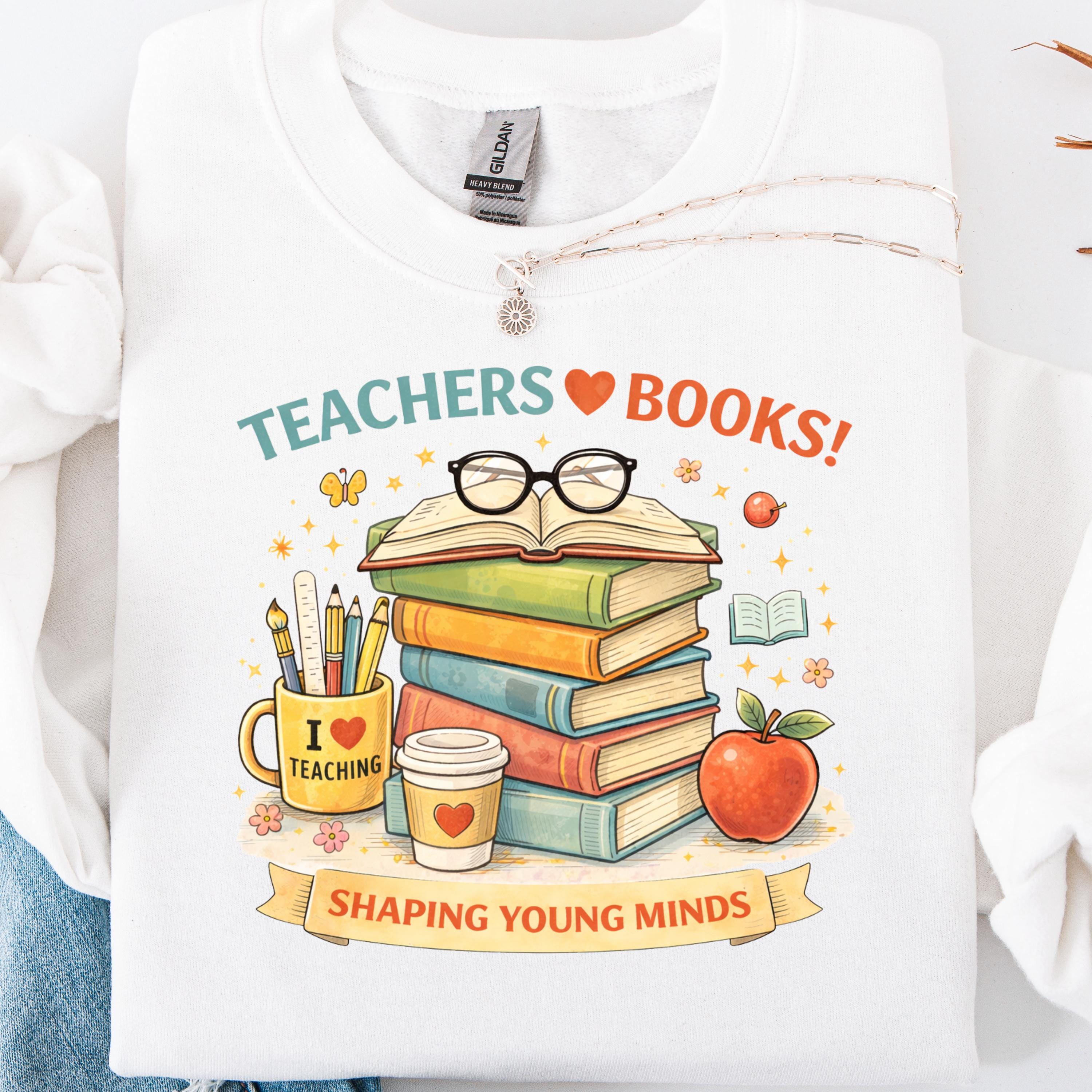 Retro Book Stack Teacher Shirt, Teaching sweatshirt for Educators Book Lover Gift