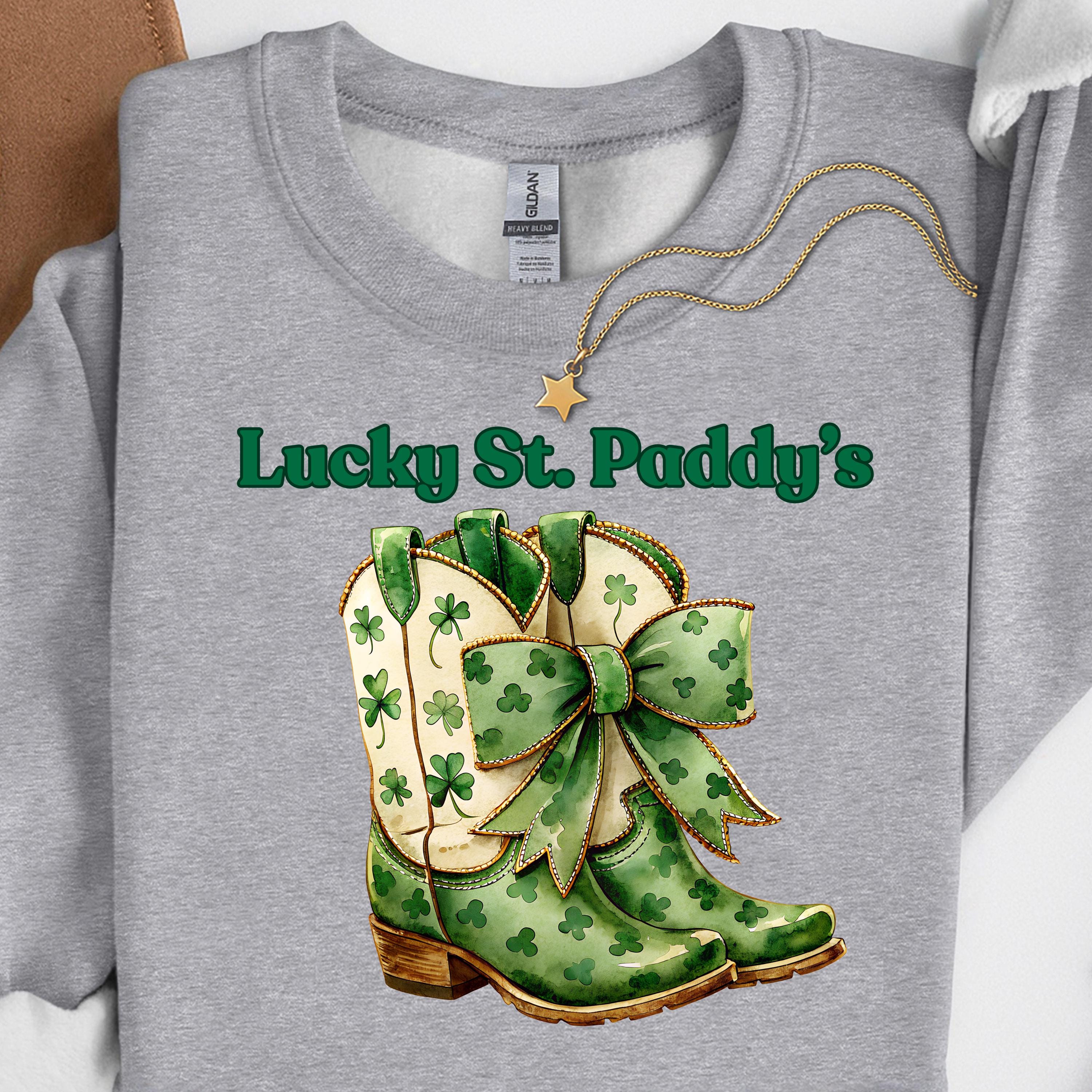 Western St. Patrick's Day Shirt, Lucky Boots sweatshirt for Irish Fans Shamrock Gift