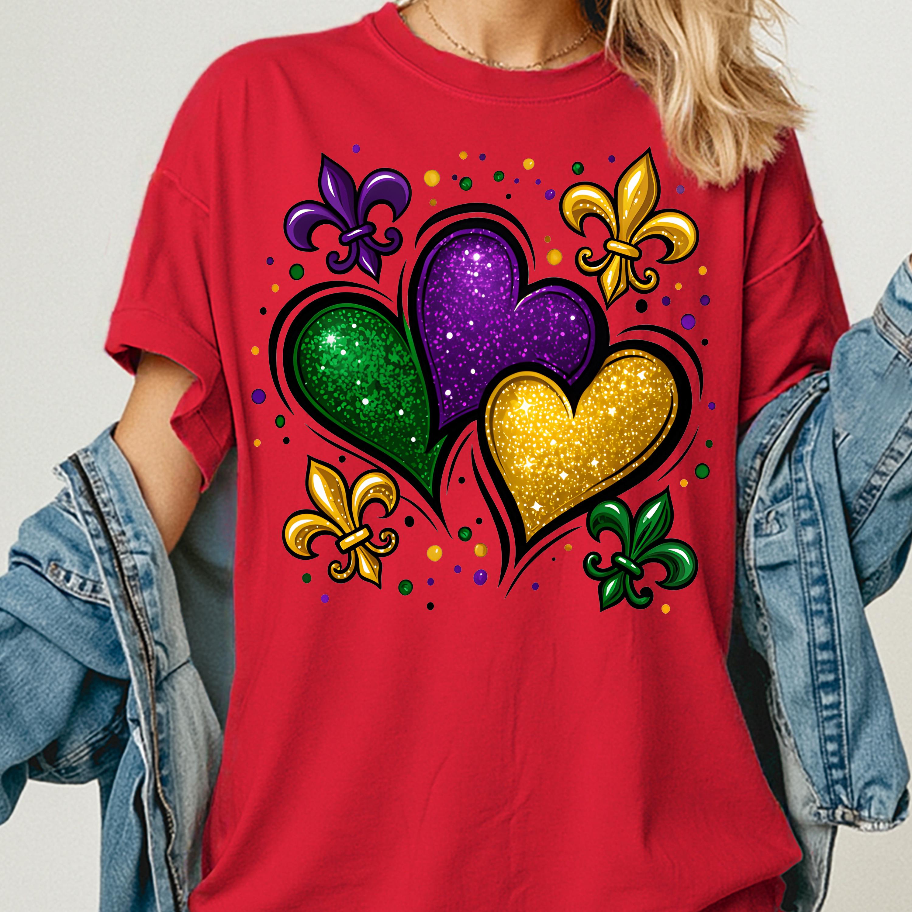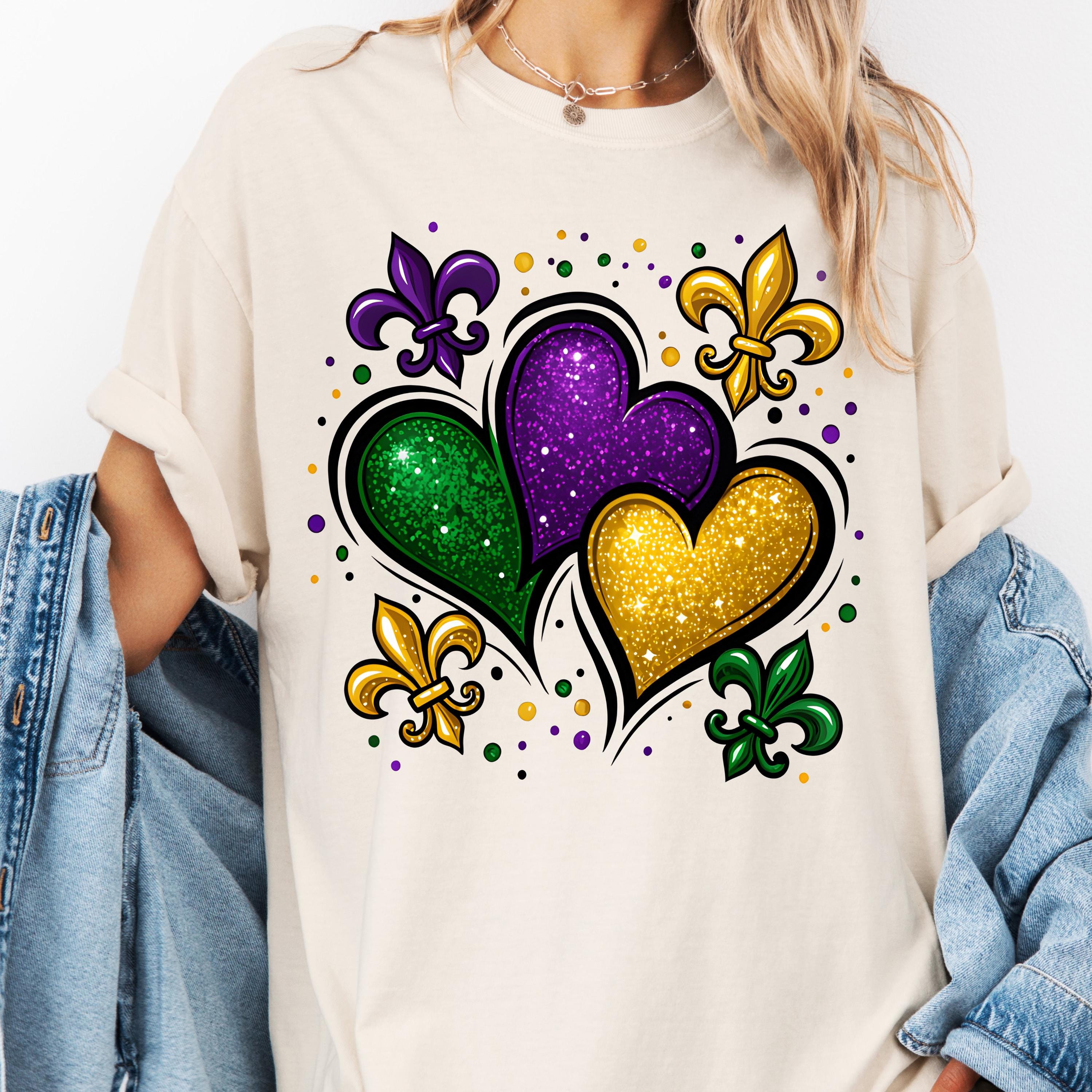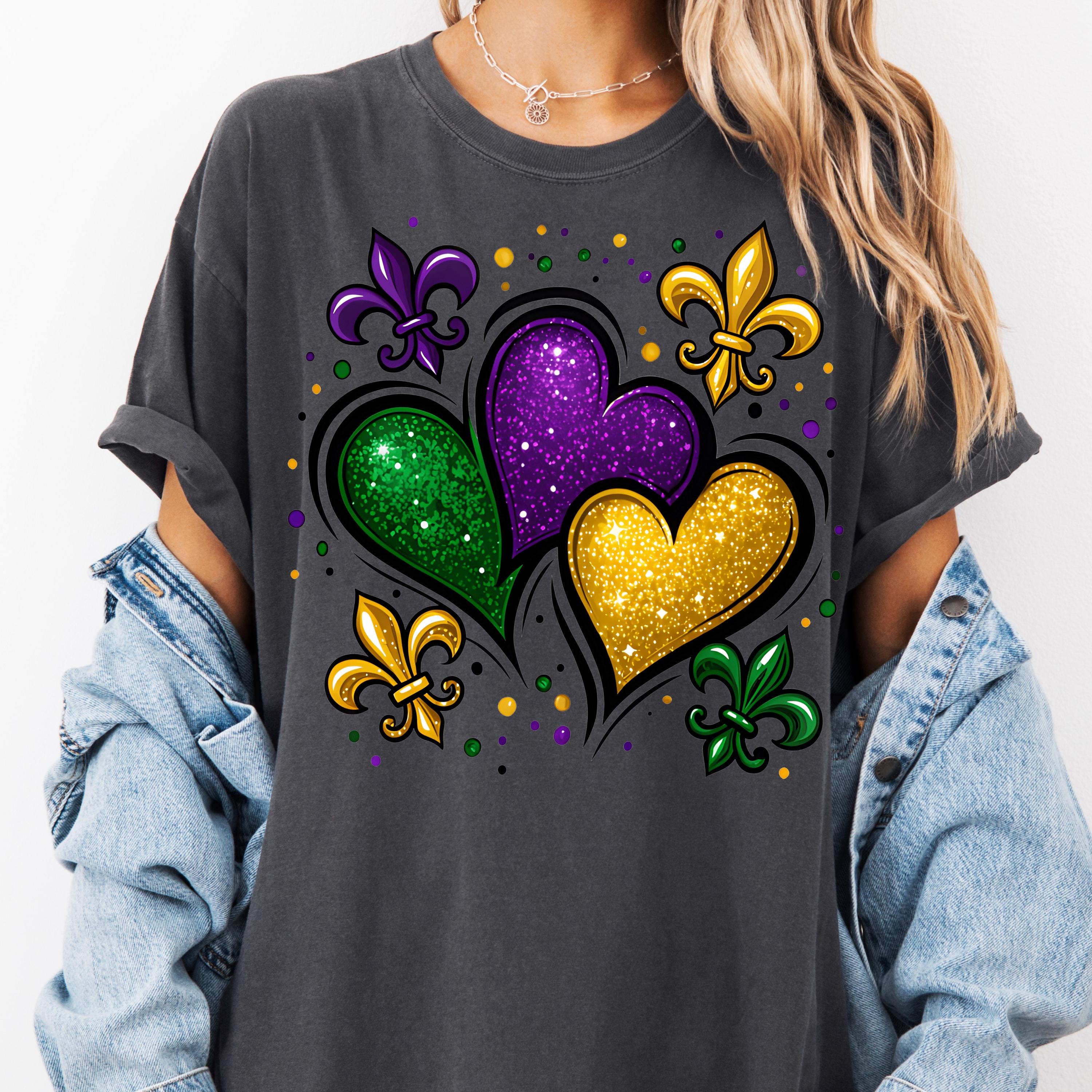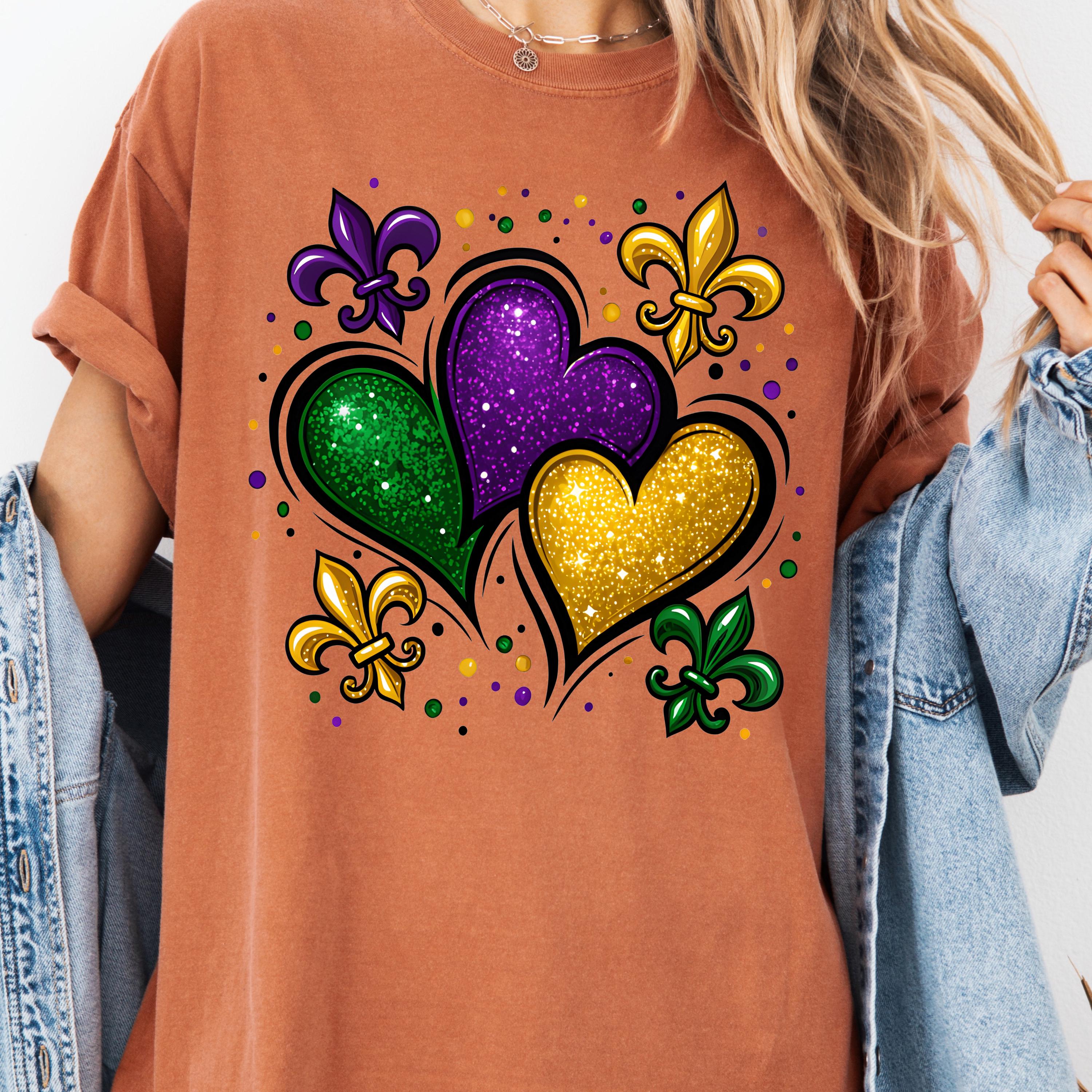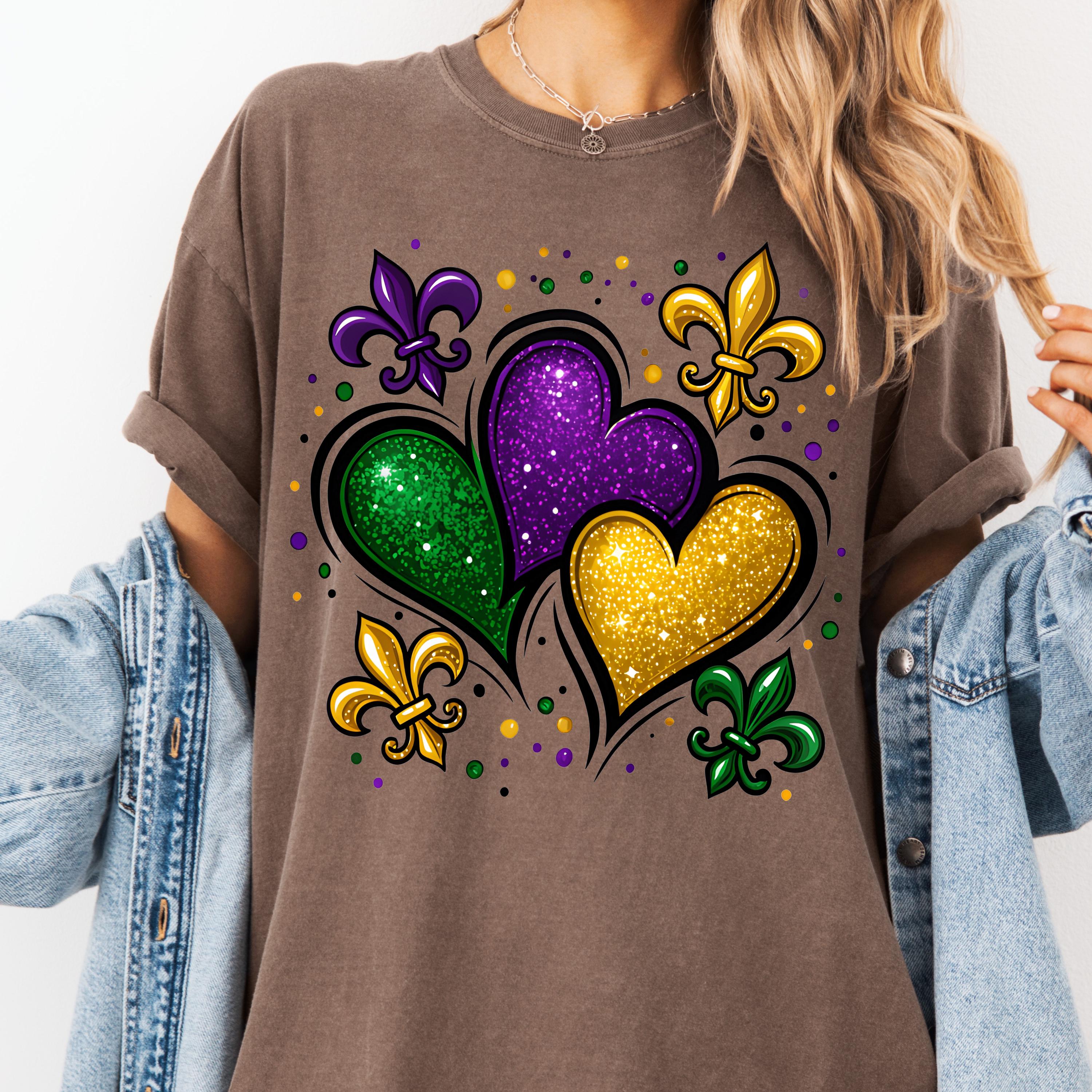 Mardi Gras Comfort Colors T-Shirt, Fleur De Lis Heart, Carnival Gift