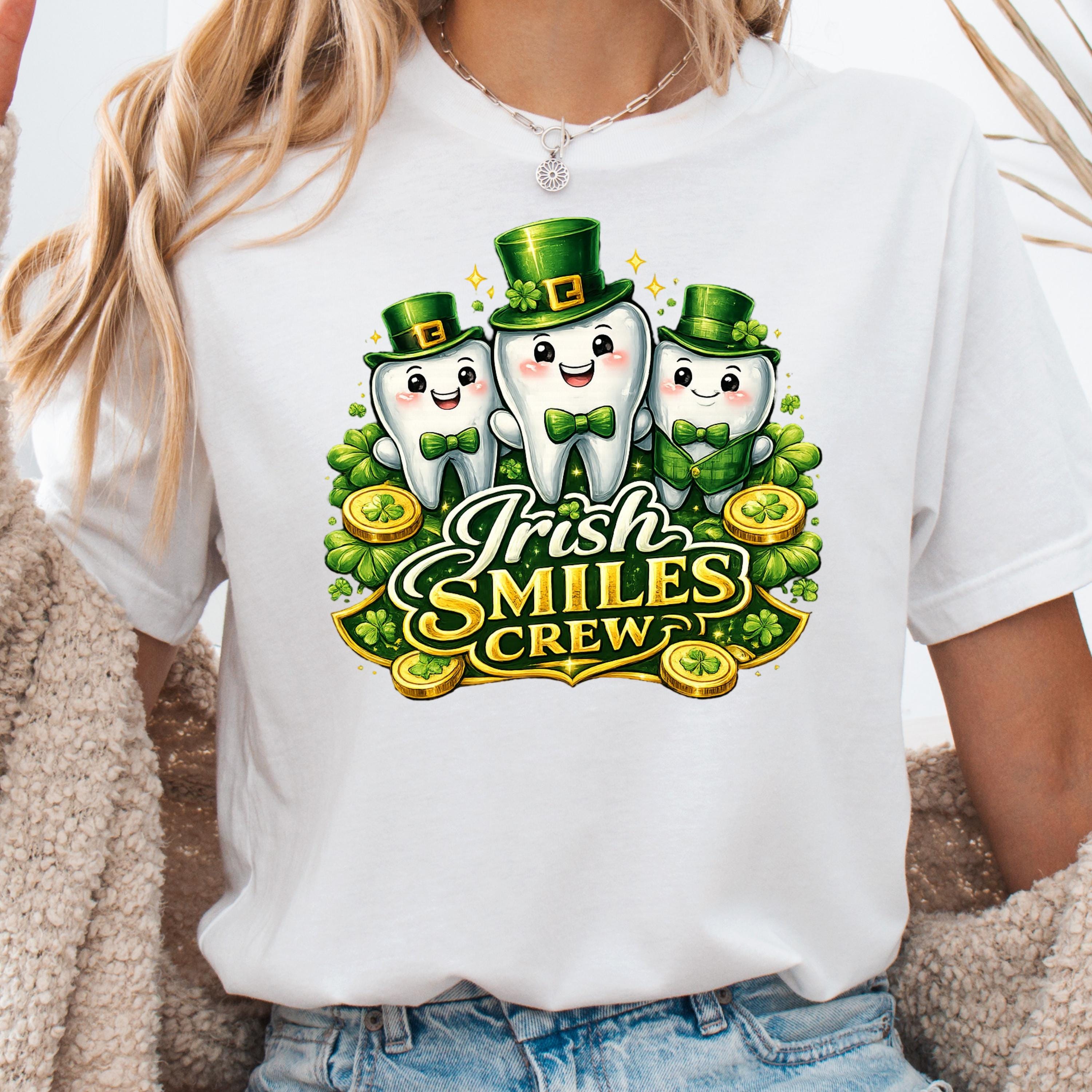 Dental Office Shamrock crew Shirt, Lucky Tooth Tee for St. Patrick's Day Dentist Gift